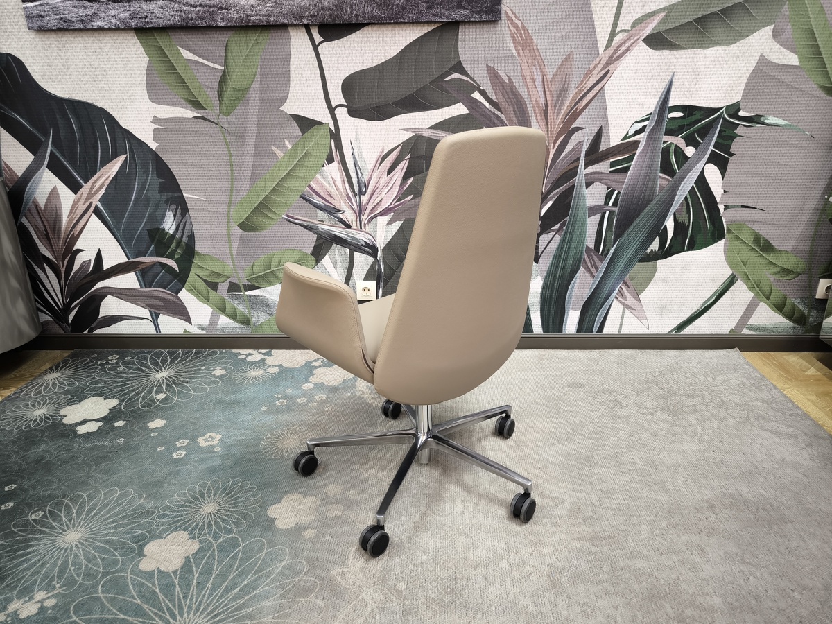Элегантное офисное кресло из натуральной кожи с лаконичным дизайном. Эргономичные формы и линии, заимствованные из автомобильного дизайна для универсального кресла для домашнего кабинета или рабочего офиса.