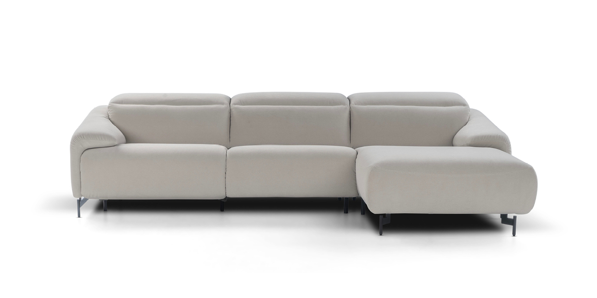 Элегантный и современный по стилю, новый диван Gemini – это воплощение изящества и креатива. Загнутые подлокотники, открытое основание, механизм реклайнер делают модель уникальной и узнаваемой. Подлокотник начинается от зоны подголовника и плавно спускается вниз, обеспечивая поддержку руки, служа при этом подушкой. В версии с электрическим реклайнером диван оснащен подъемным подголовником и механизмом откидывания, управляемыми сенсорной панелью, расположенной под спинкой. Он также доступен в линейных или угловых версиях с шезлонгом, а также в фиксированной версии без механизма откидывания, с ручным подъемом подголовника.