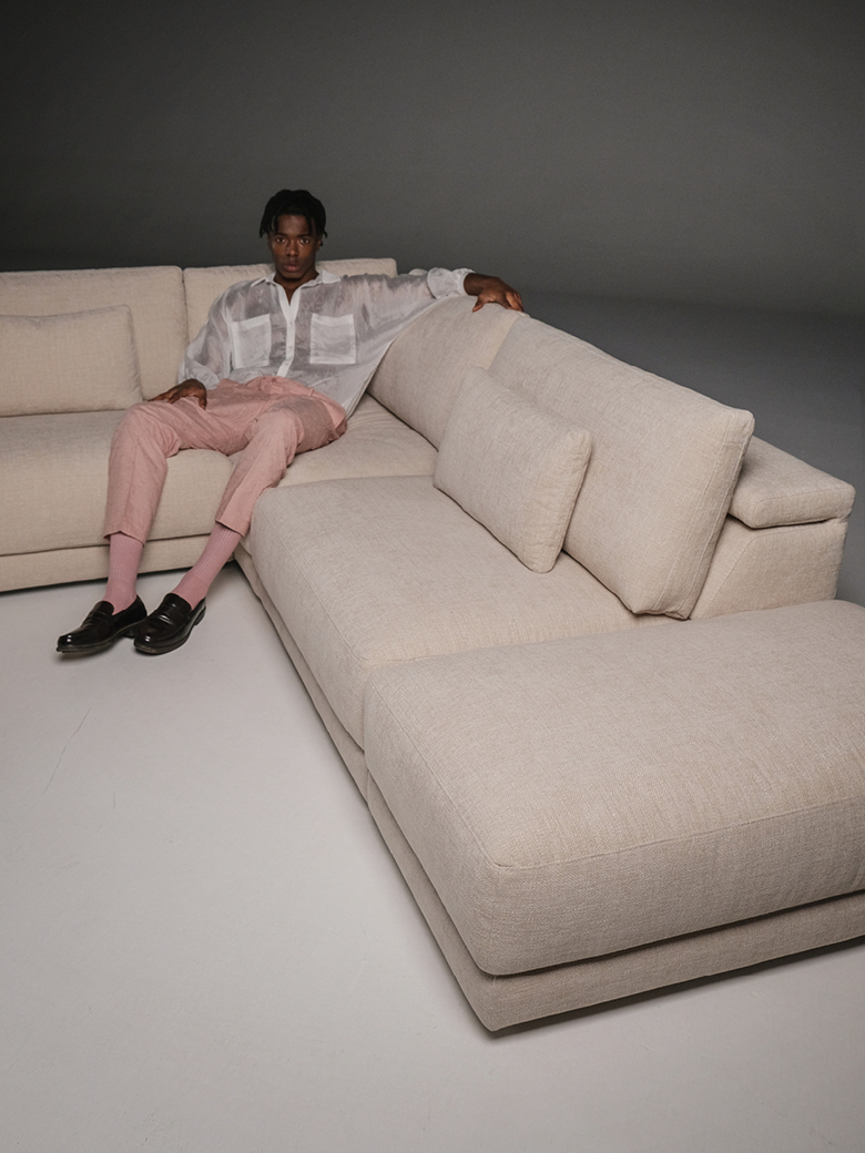 Диван угловой Matheola Calia Italia с подъемными подушками и увеличением высоты спинки и глубины