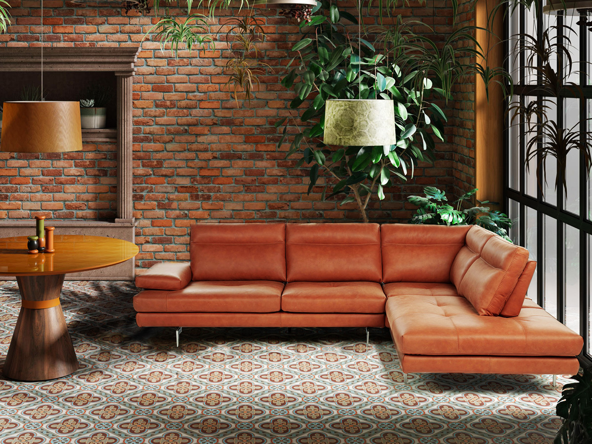 Диван итальянский кожаный угловой Toby Wing Calia Italia с переставной спинкой и увеличением глубины