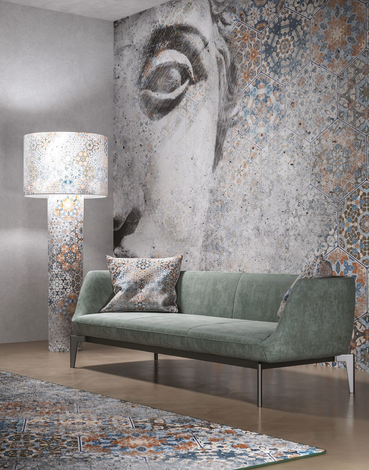 Также, единый художественный принт может быть нанесен и на стены, оставаясь при этом абсолютно экологичным. Новая инновационная технология Free-Air, микросмола, применяемая в укрывных тканях, придает обработанным поверхностям уникальные свойства, действуя как активный антибактериальный, сертифицированный противовирусный и естественный очиститель воздуха. Подойдет для использования внутри и вне помещений, это самый мощный неэлектрифицированный инструмент, способный значительно уменьшить загрязнение воздуха, благодаря своим естественным антибактериальным и ионизирующим свойствам.