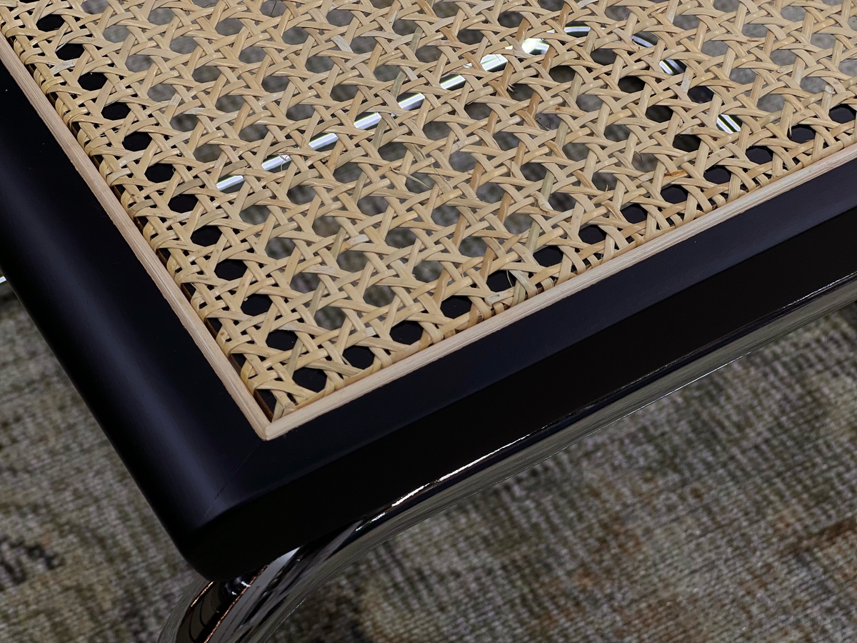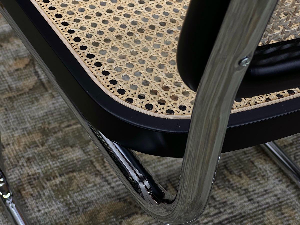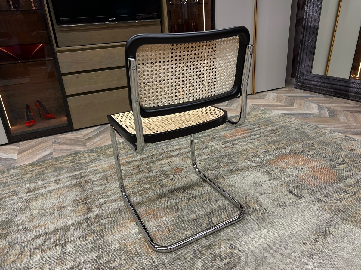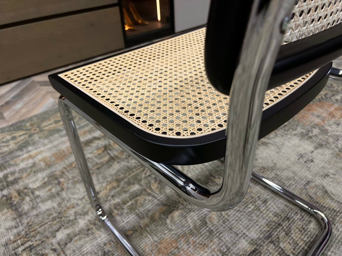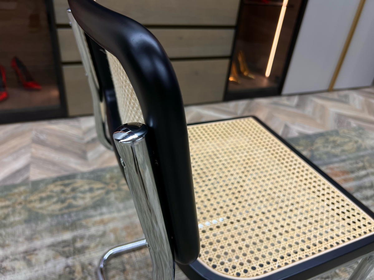 стали и натуральной венской соломки; и консольной формой, которая словно парит в воздухе. В