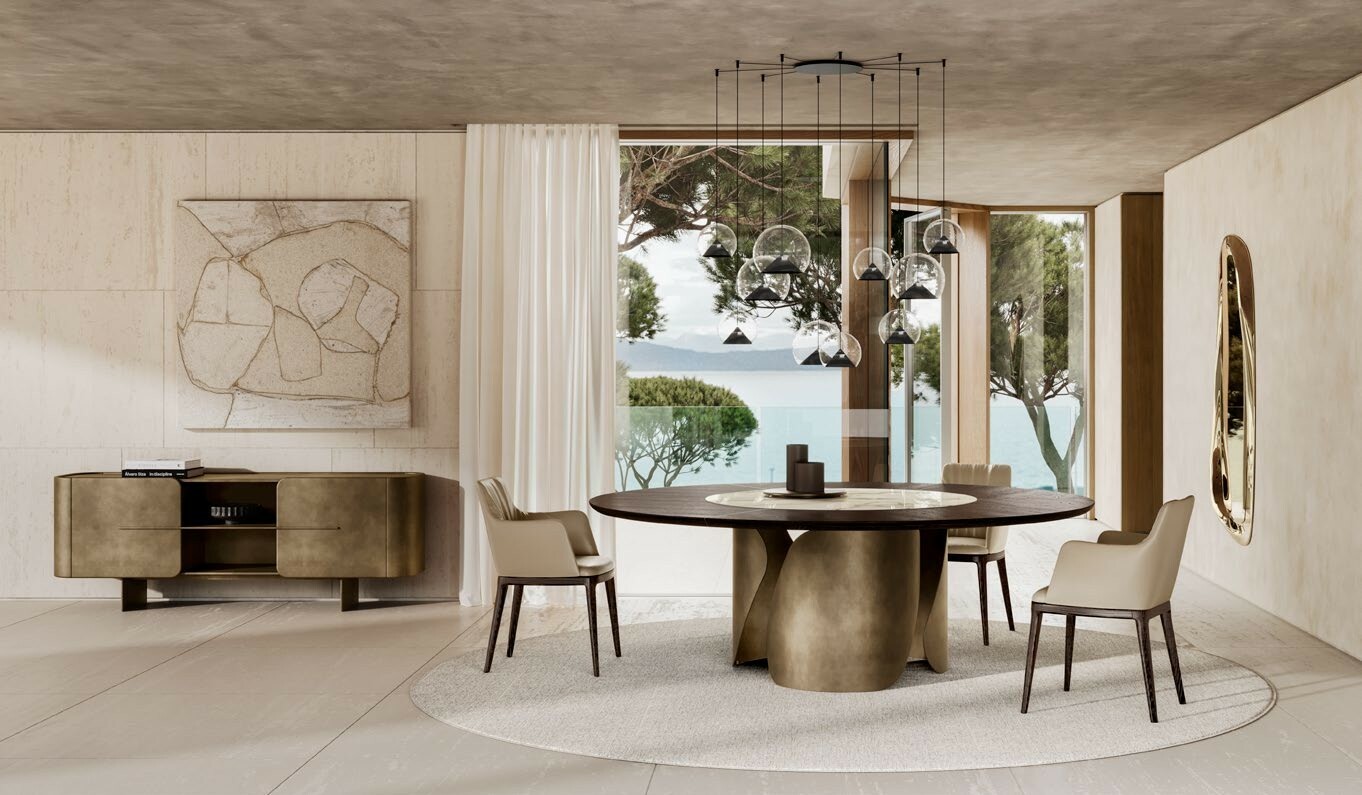 Итальянский стол Onda компании Eforma позволяет оценить основание целиком, предлагая различные визуальные переходы в зависимости от угла, с которого на него смотрят.