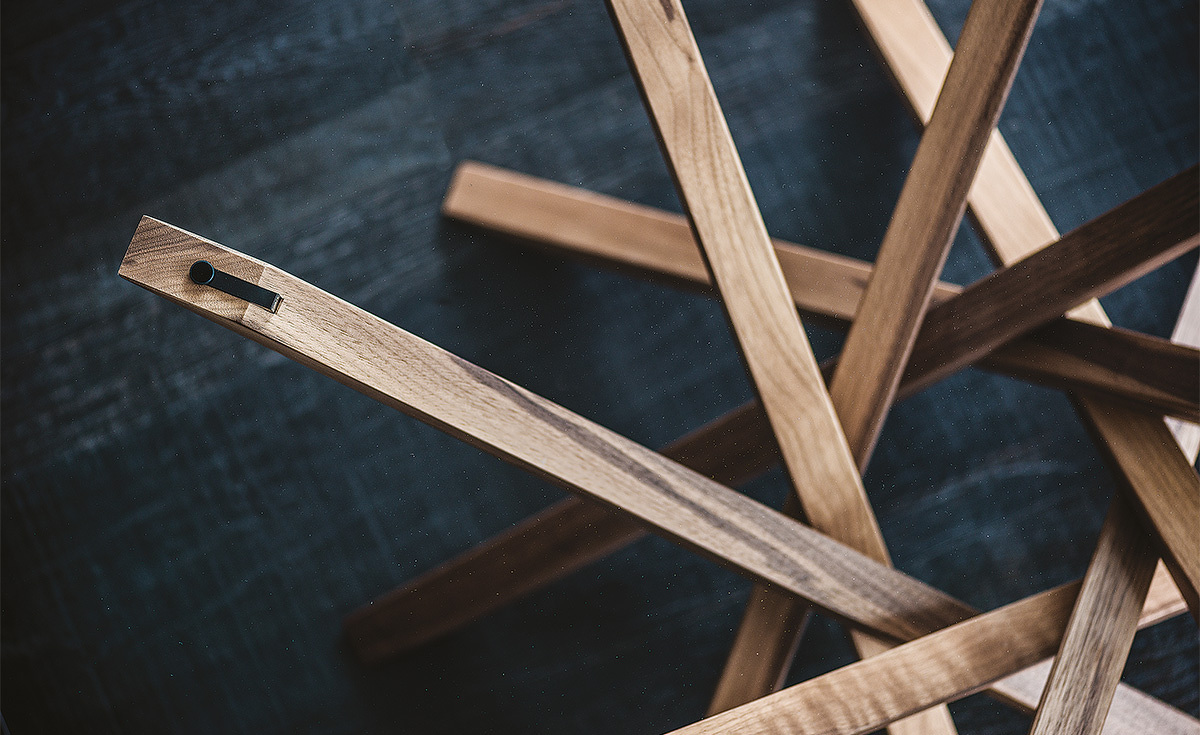 Atari, спроектированный креативным дизайнером Giorgio Cattelan, представляет собой стеклянный журнальный столик для гостиной, основание которого образовано спиралью деревянных элементов, на котором установлена великолепная стеклянная столешница. 8 ножек этого современного круглого или квадратного журнального столика сделаны из ценных пород дерева и, кажется, только упираются друг о друга., сохраняя при этом баланс и равновесие. Композиция является оригинальным арт-объектом благодаря превосходной работе и вниманию к деталям. Столешница из прозрачного стекла позволяет полностью оценить красоту основания.