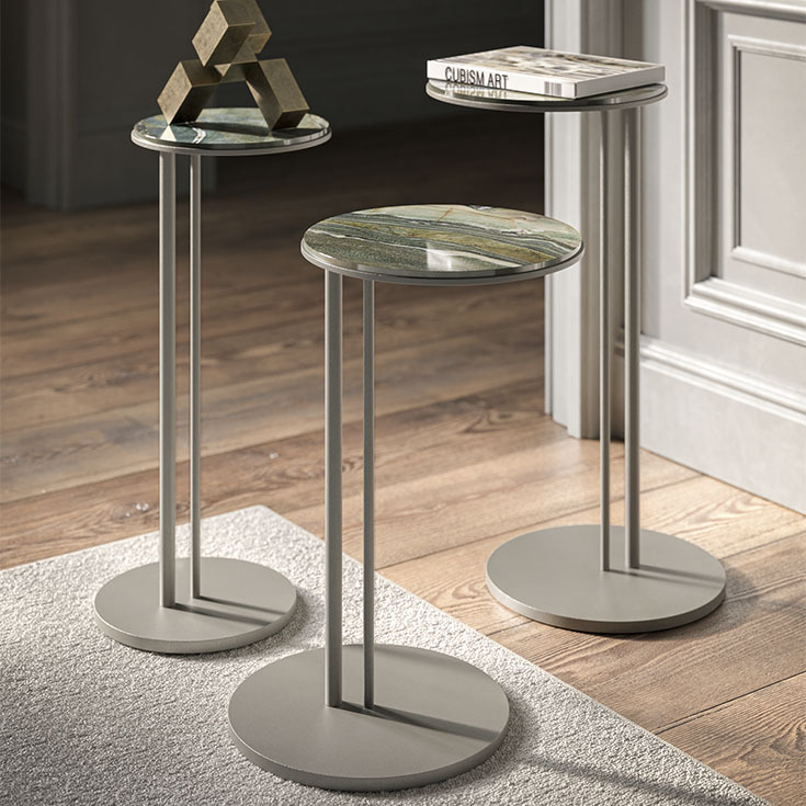 Столики из коллекции Sting удивляют своей естественной элегантностью и несомненной практичностью. Легкие и удобные, эти металлические столики созданы для использования в зоне гостиной. Они подходят для установки рядом с диваном или креслом, в качестве подставки под цифровые устройства (ноутбук, телефон...), для журналов или аперитивов. Одним словом, это прекрасный аксессуар для приема гостей в комфортной обстановке современной гостиной, уютной и легко изменяемой. Стальное основание состоит из двух длинных ножек разного диаметра, покрытых металлизированной отделкой. Изначальная идея столиков разработана креативным дизайнером Paolo Cattelan со столешницей из керамического материала Marmi. Далее Sting превратился в версию Sting Brushed, с основанием и столешницей из нержавеющей стали, обработанной вручную умелыми мастерами.