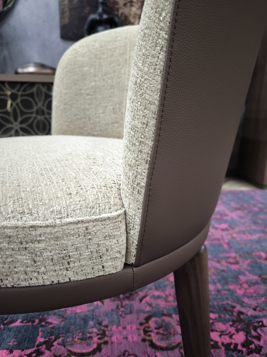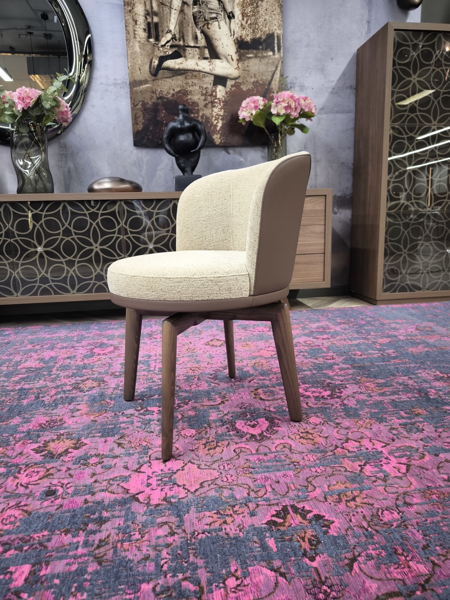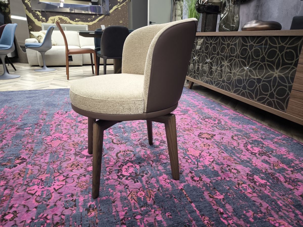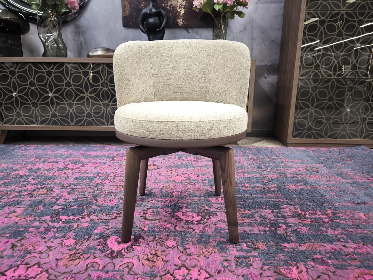 Стул Ginger на поворотном деревянном основании - это уже больше по форме кресло, выполненное в классическом стиле, пересмотренном в современном ключе и с актуальным взглядом на комфорт и функциональность.