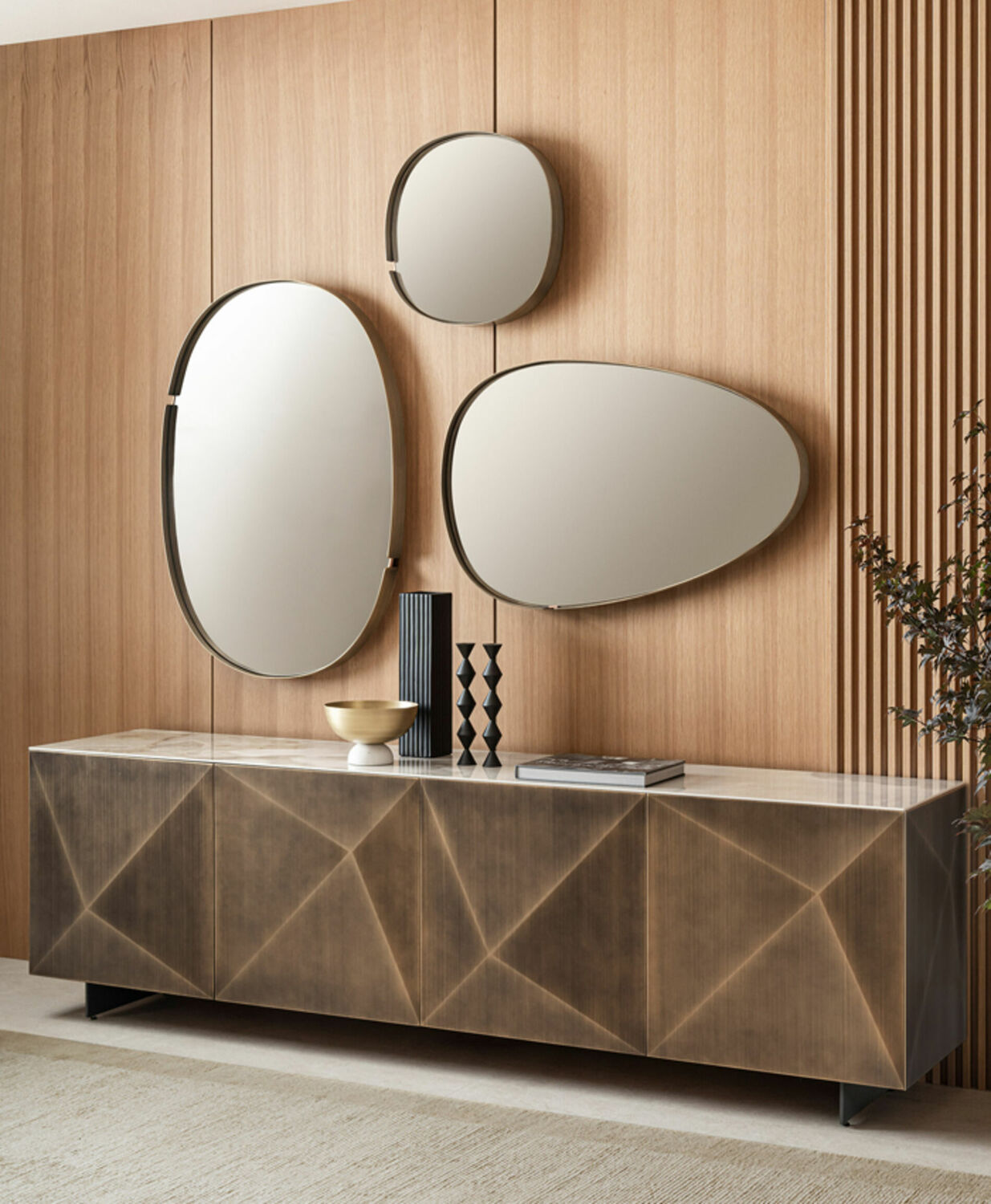 Тумба итальянская дизайнерская Cubric с металлическими фасадами в форме бриллианта Riflessi