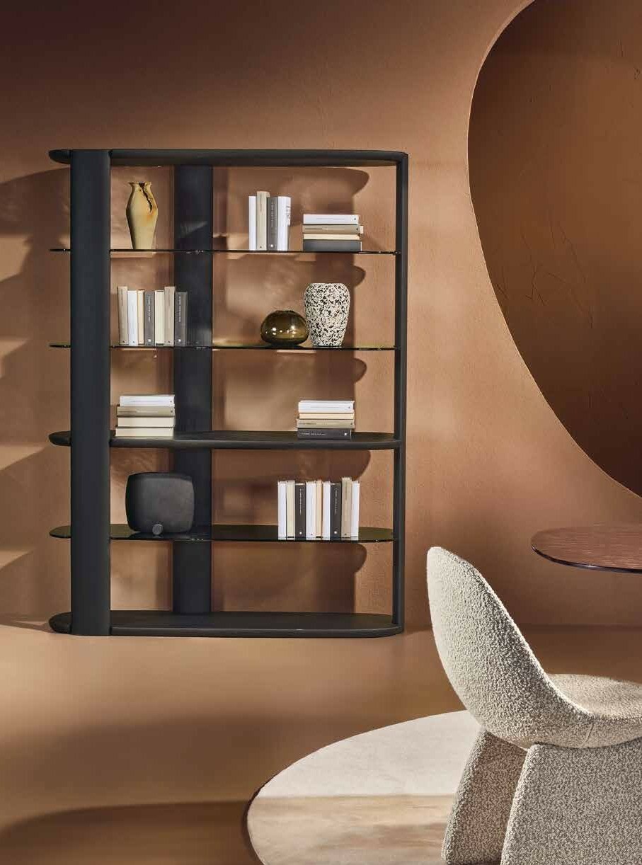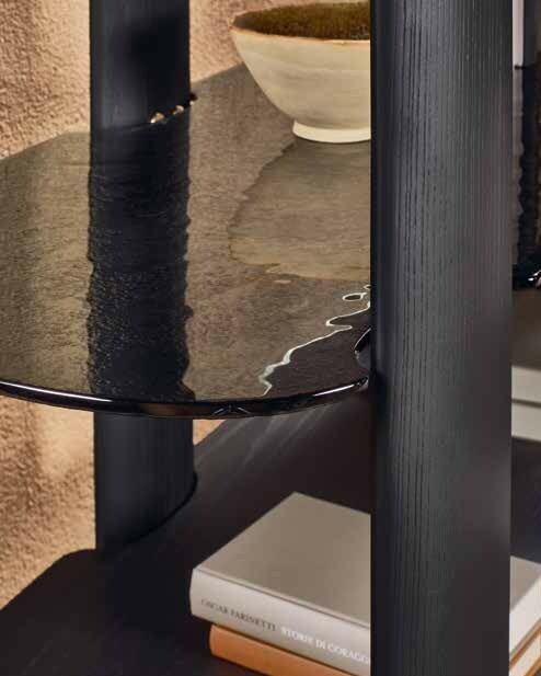 В эпоху визуального изобилия библиотека Inlay предстаёт настоящим оазисом спокойствия. Её дизайн-концепция выходит за рамки обычного хранилища книг, превращаясь в образец естественной элегантности, где каждая деталь отражает высочайшее мастерство ручной работы. Основа Inlay — три массивные деревянные стойки с эллиптическим сечением. Они подобны храмовым колоннам, придающим всей конструкции архитектурную выразительность. Глубокая матовая текстура древесины вступает в изысканный контраст с полупрозрачным сиянием стекла, создавая удивительный лабиринт отражений и текстурных нюансов. Благодаря вариативности высоты библиотека Inlay легко адаптируется к любым задачам: она может служить компактной консолью в прихожей, элегантным хранилищем в столовой или величественно тянуться к потолку в гостиной. Это воплощение архитектурного минимализма, согретого теплом ручной работы.