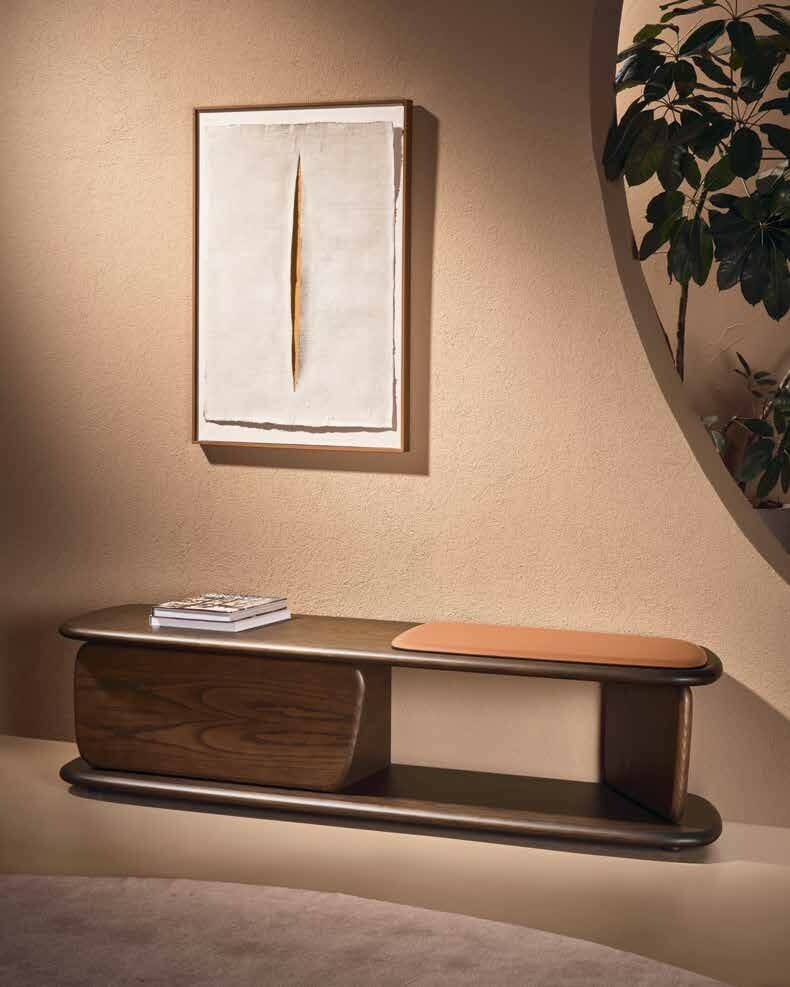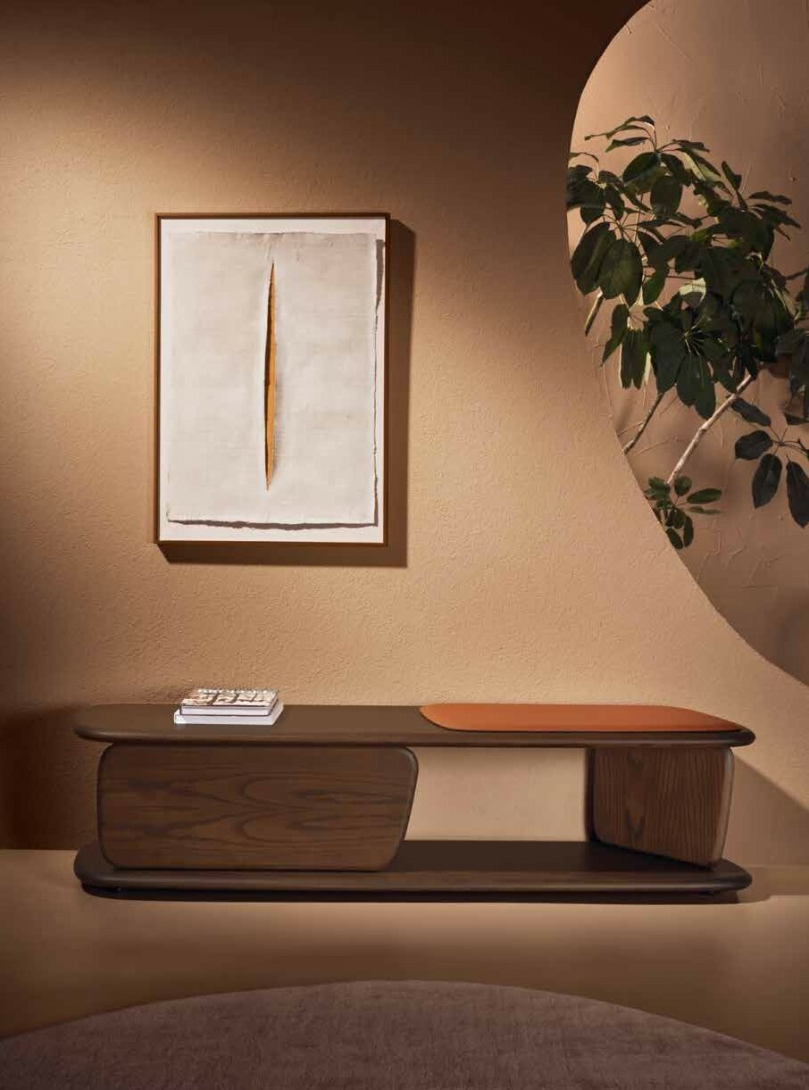 Litha: скульптурная пауза в пространстве вашего дома. Удивительный гибрид консольного столика и скульптурной скамьи выходит за привычные рамки, превращая функциональность в подлинное эстетическое наслаждение. Каждый изгиб продуман до мелочей, приглашая глаз оценить не только материальную часть, но и красоту пустоты между формами. Тёплый ореховый ясень с богатой органической текстурой создаёт неповторимый характер, а сиденье из натуральной кожи дополняет роскошный образ, становясь завершающим штрихом. Во всей серии Litha воплотилась идея о том, что истинная роскошь заключается не в показной пышности, а в гармонии форм, качестве материалов и безупречном исполнении.