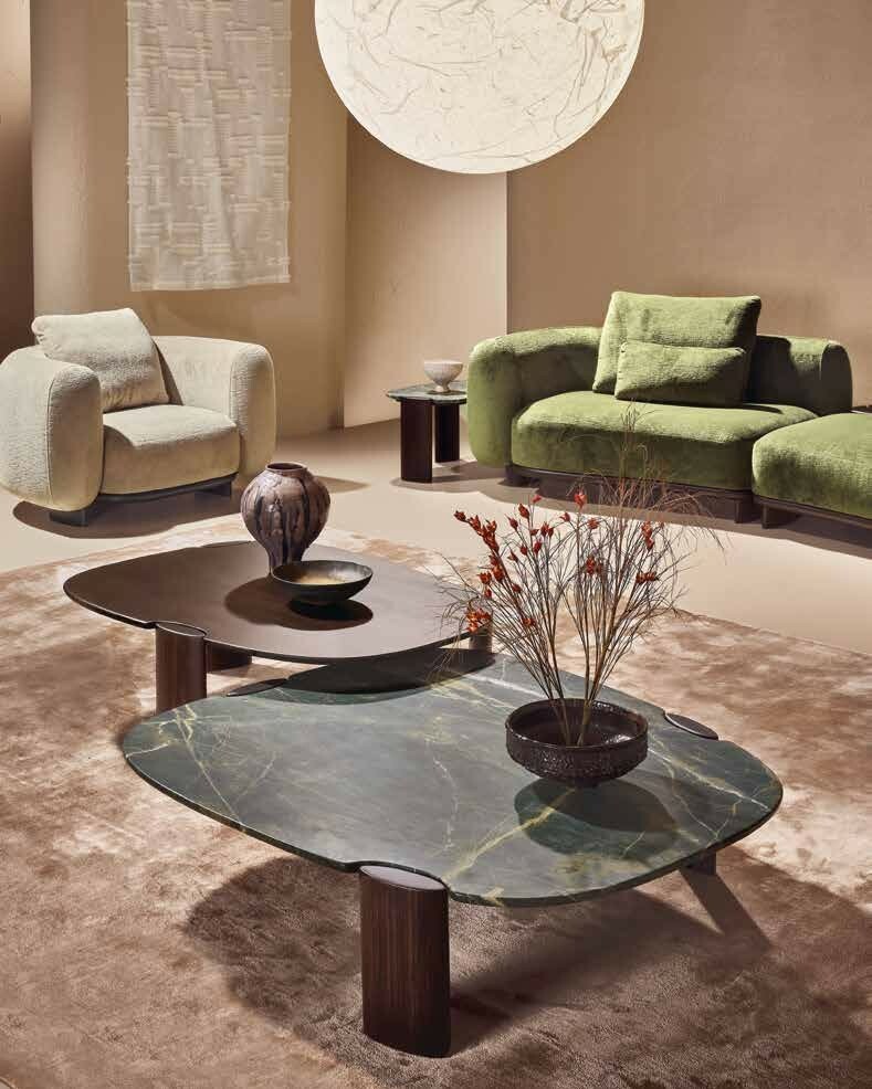 Коллекция Inlay представлена линейкой небольших столиков. Материал столешницы может варьироваться — от благородного мрамора до тёплого дерева — но каждый выбор усиливает характер объекта, а не маскирует его. Основание, выполненное в виде скульптурной опоры, одновременно поддерживает столешницу и растворяется в пространстве, будто корни, уходящие в землю. Доступная в разных размерах и вариантах отделки, коллекция органично смотрится у дивана, у кресла, у кровати — везде, где важна интимность жеста: поставить чашку, оставить книгу, положить руку.