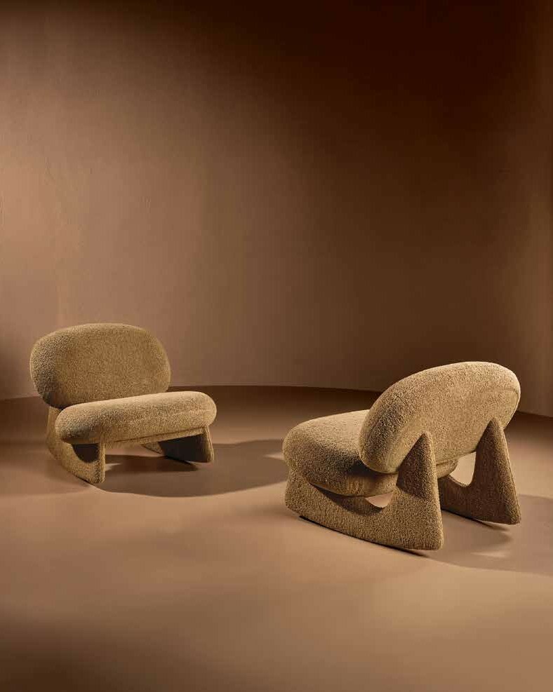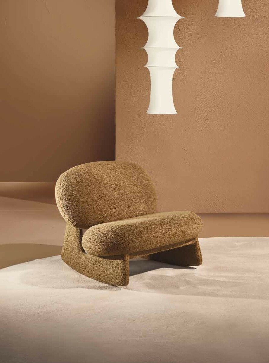 Кресло Twig Rocker — возвращение к ритму, который знали наши бабушки: медленному, убаюкивающему, как дыхание ветра в детстве. Полностью обитое мягким карамельным букле, оно преображается: основание, некогда открытое, теперь словно прячется под слоем уюта. Это превращение придаёт креслу ещё более объёмный, скульптурный вид — оно больше напоминает мягкую каплю, парящую в воздухе, чем жёсткую конструкцию. Но несмотря ни на что, надежность остается прежней: массив ясеня или дуба по-прежнему служит скрытой опорой, символом стабильности, как фундамент старинной усадьбы.