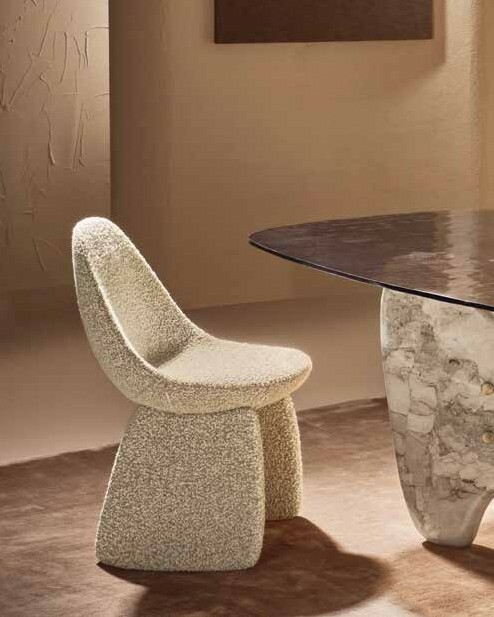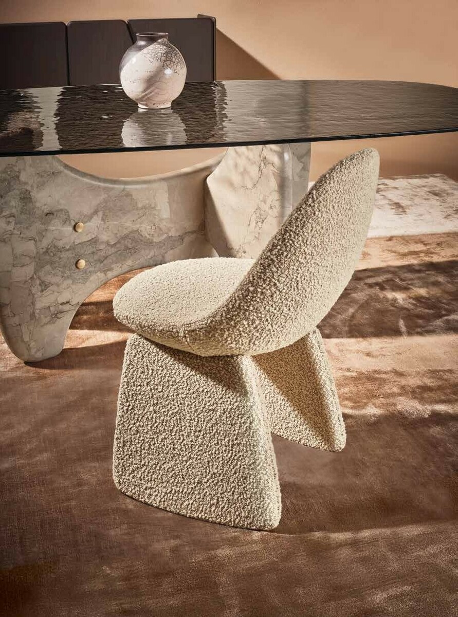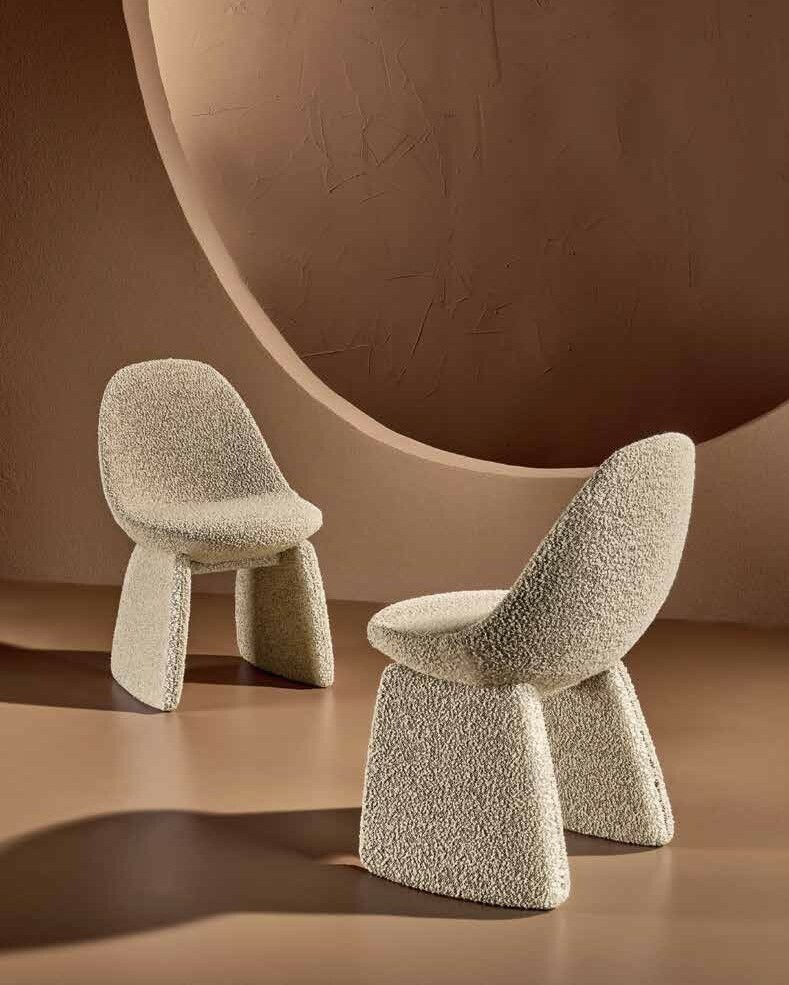 Стул итальянский дизайнерский Pluma в ткани букле Nature Design с плавными формами