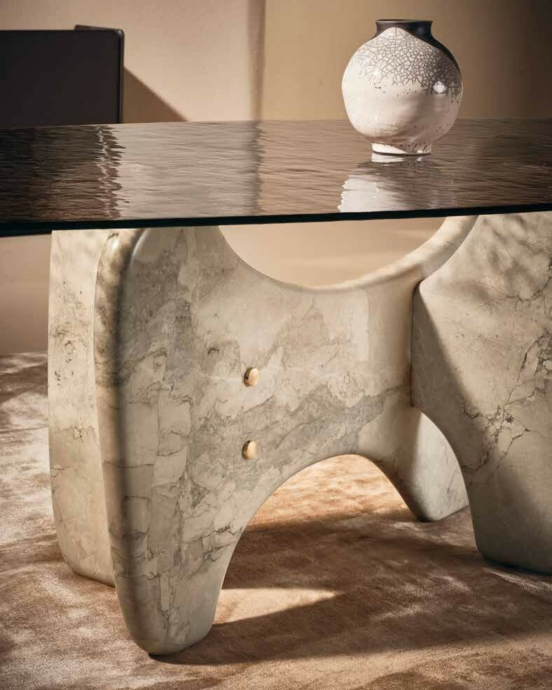 Стол итальянский дизайнерский обеденный Tribe Stone Nature Design стеклянный на каменном основании