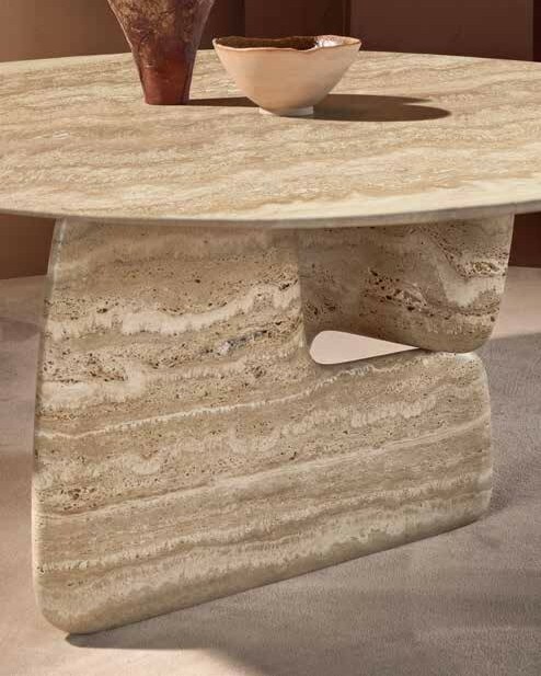 Стол лаунж итальянский Balance Lounge Nature Design из травертина на скульптурном основании