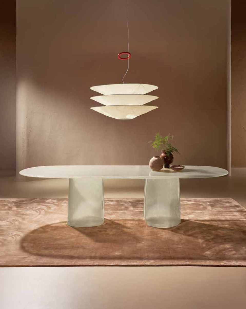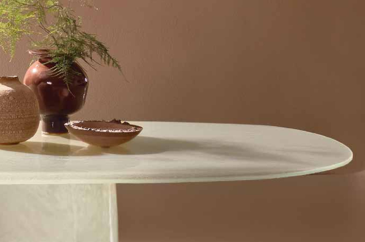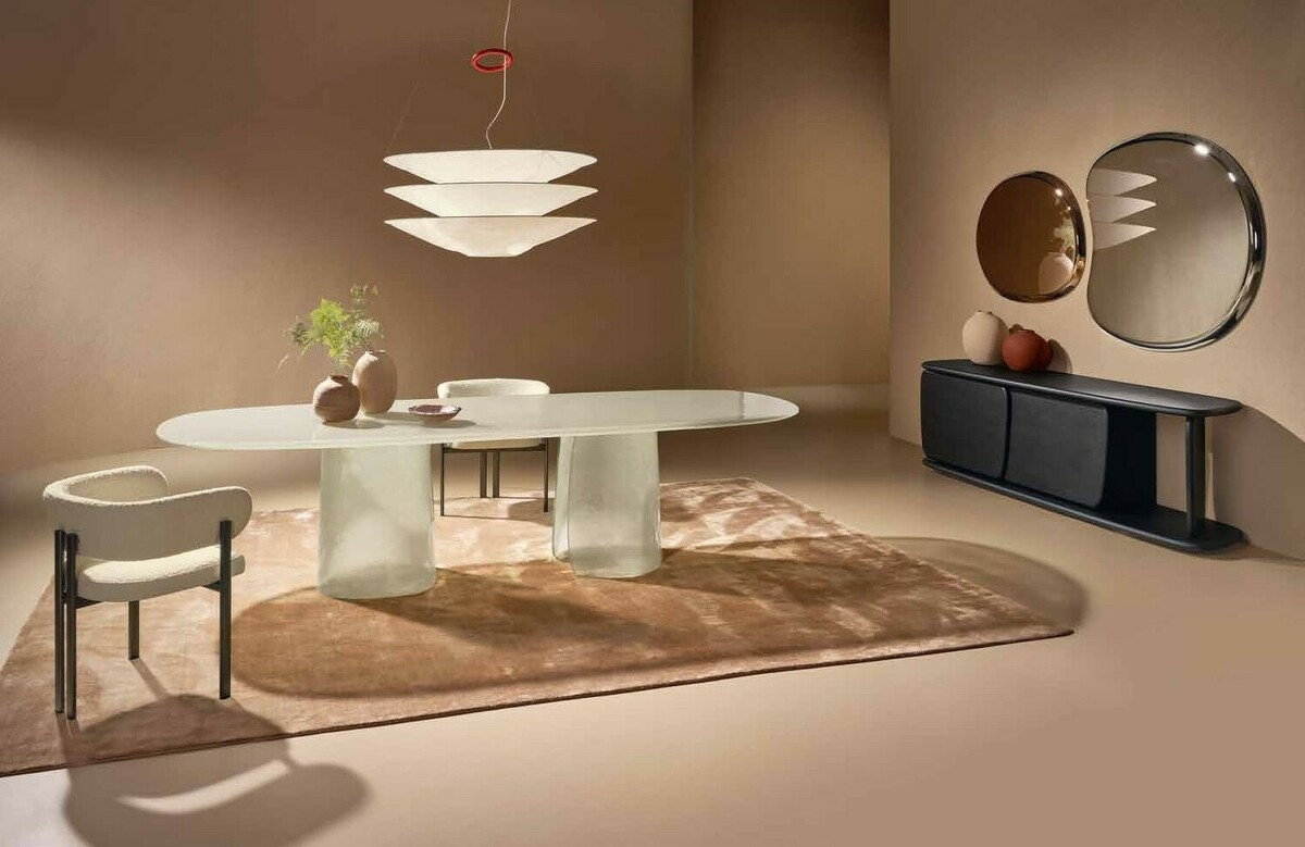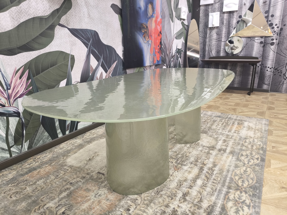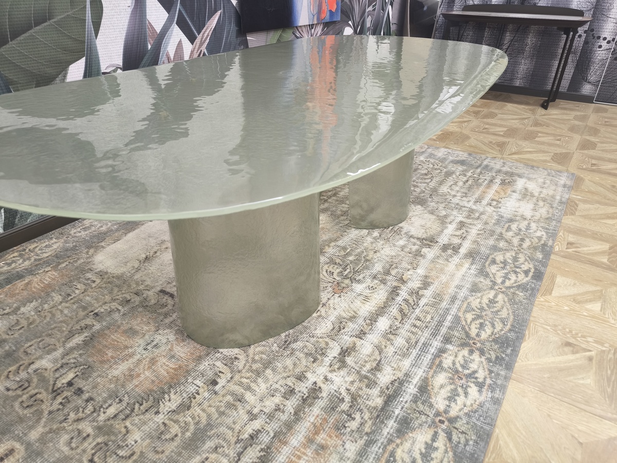 Изысканная грация воплотилась в этом удивительном столе, где стекло становится главным действующим лицом, танцующим в ритме природных изгибов. Cinnamon изготовлен полностью из литого стекла — основание, отлитое с ювелирной точностью, повторяет естественные изгибы коричной палочки, создавая завораживающий скульптурный силуэт. Плавно наклонённая кромка столешницы создает эффект лёгкого приглашения присесть, а её деликатное скругление перекликается с общей текучестью формы. Стол в цвете мятного тумана выглядит как кусочек застывшей прозрачной воды с лёгкой бирюзовой дымкой. Исполненный бронзовом оттенке придаёт пространству глубину и теплоту солнечных бликов. Cinnamon очаровывает с первого взгляда своей чувственной эстетикой, рождая новый стандарт интерьерной роскоши.