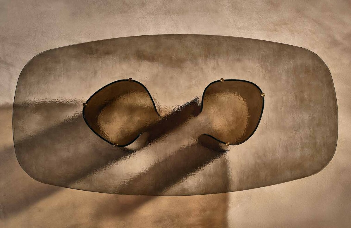 коричной палочки, создавая завораживающий скульптурный силуэт. Стол в бронзовом оттенке