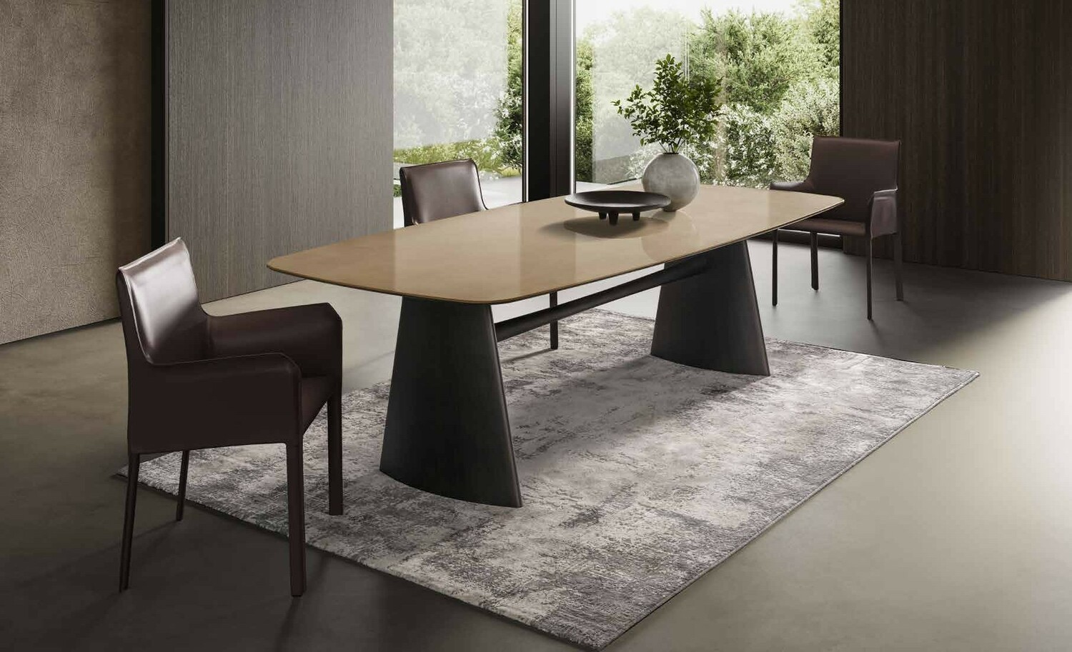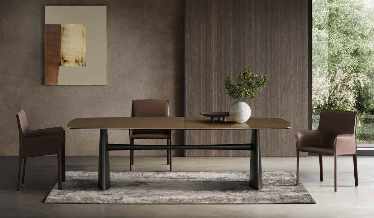 Стол Adriano поражает своим размером и одновременно утончённым силуэтом. Столешница и ассиметричная перекладина повторяют силуэт друг друга, создавая гармоничное единство. Две опоры в виде изящных плавников придают всей конструкции особую природную грациозность. Adriano идеально впишется как в интерьер гостиной, так и в столовую, Бренд Tafaruci с полным правом гордится своей уникальной коллекцией керамических покрытий для столешниц, поражающей воображение своим разнообразием и качеством. Здесь представлены всевозможные формы, от классического круга или прямоугольника до бочки, чтобы воплотить самые оригинальные идеи и удовлетворить самый взыскательный вкус. Листайте галерею и экспериментируйте со смелыми сочетаниями, создавая неповторимый образ вашей идеальной столовой.