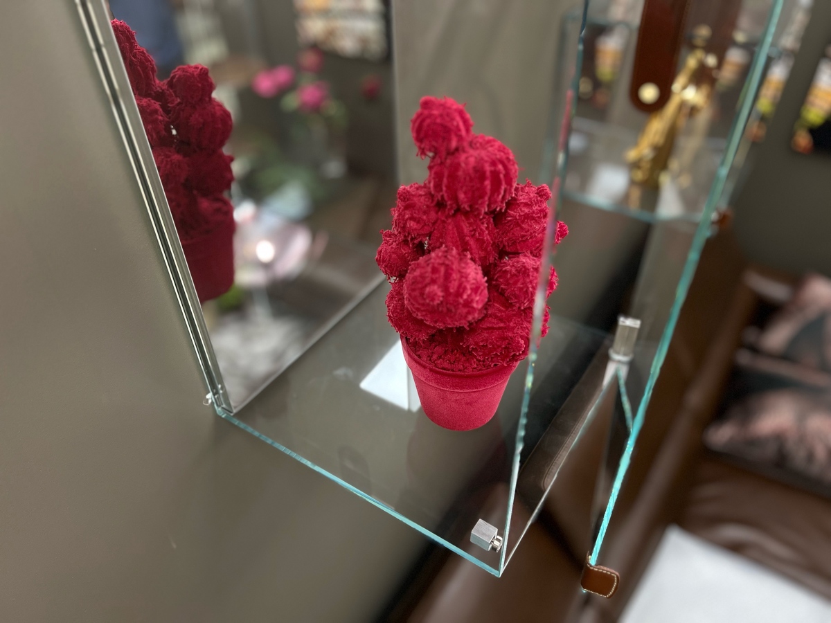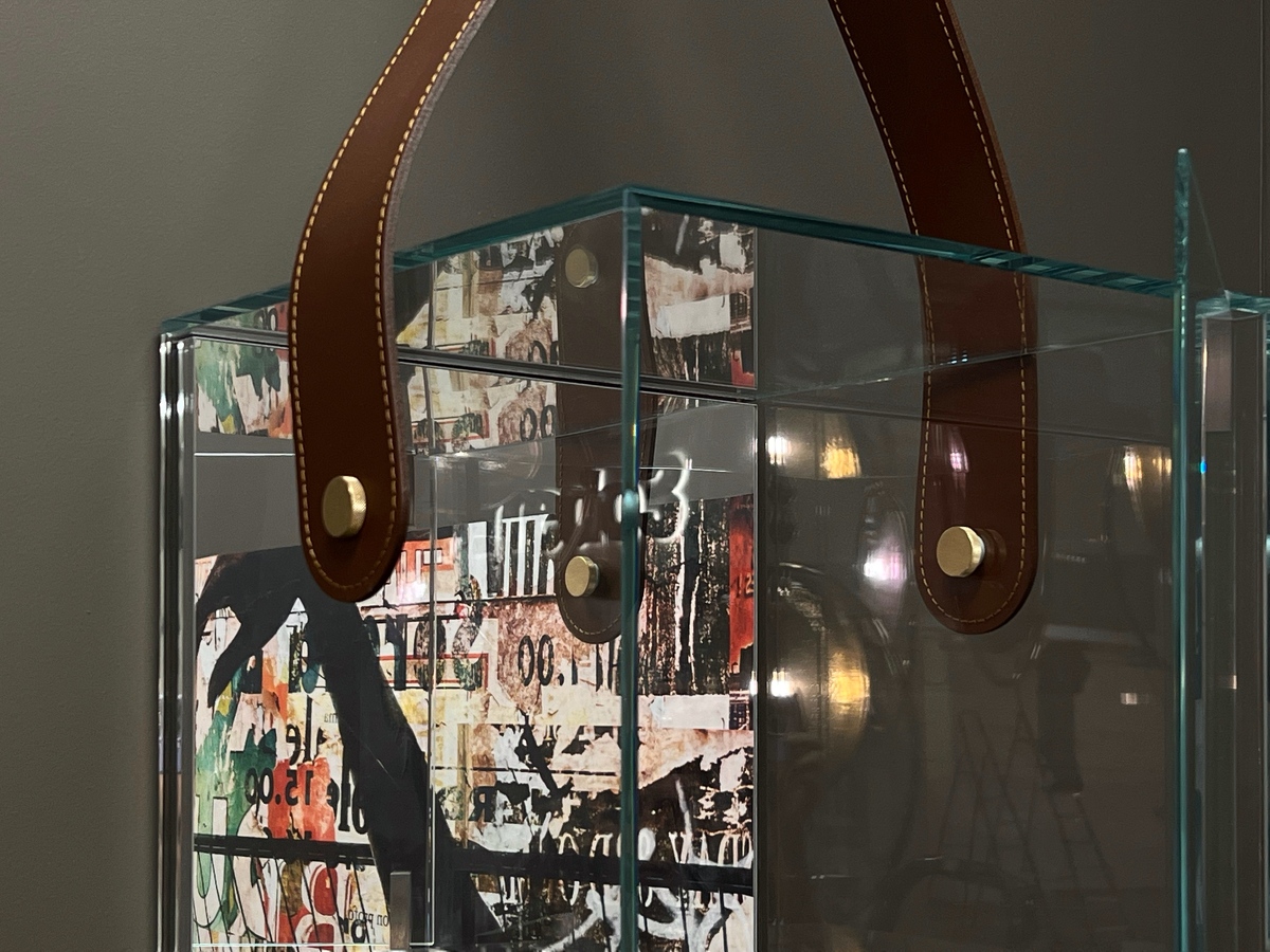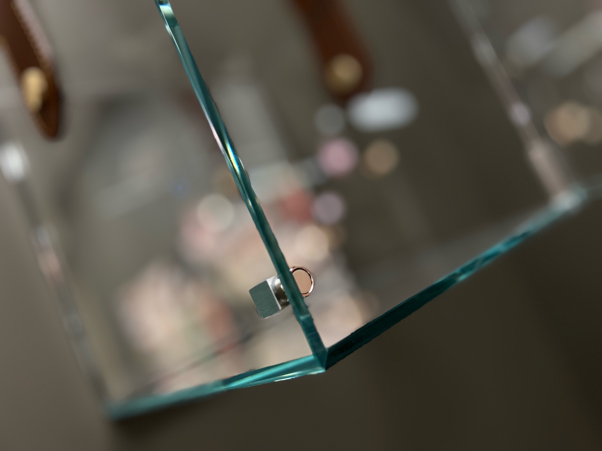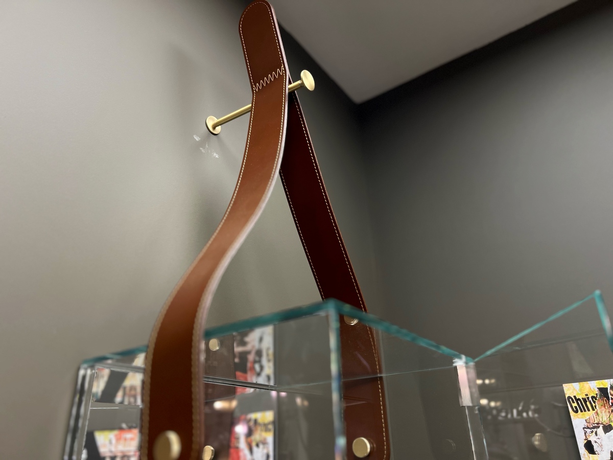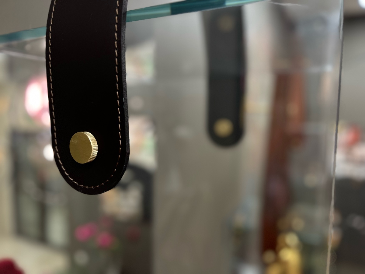 Полка Cheri большая стеклянная итальянская с зеркальной стенкой с элементами из кожи Tonin Casa
