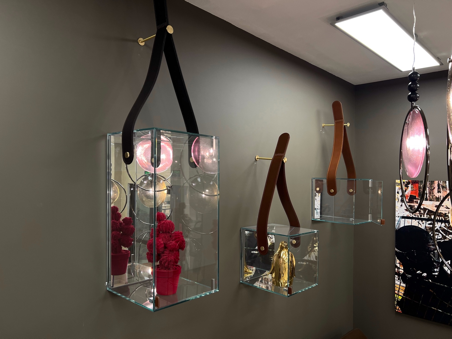 Полки имеют дверку и могут использоваться как дизайнерские подвесные витрины.