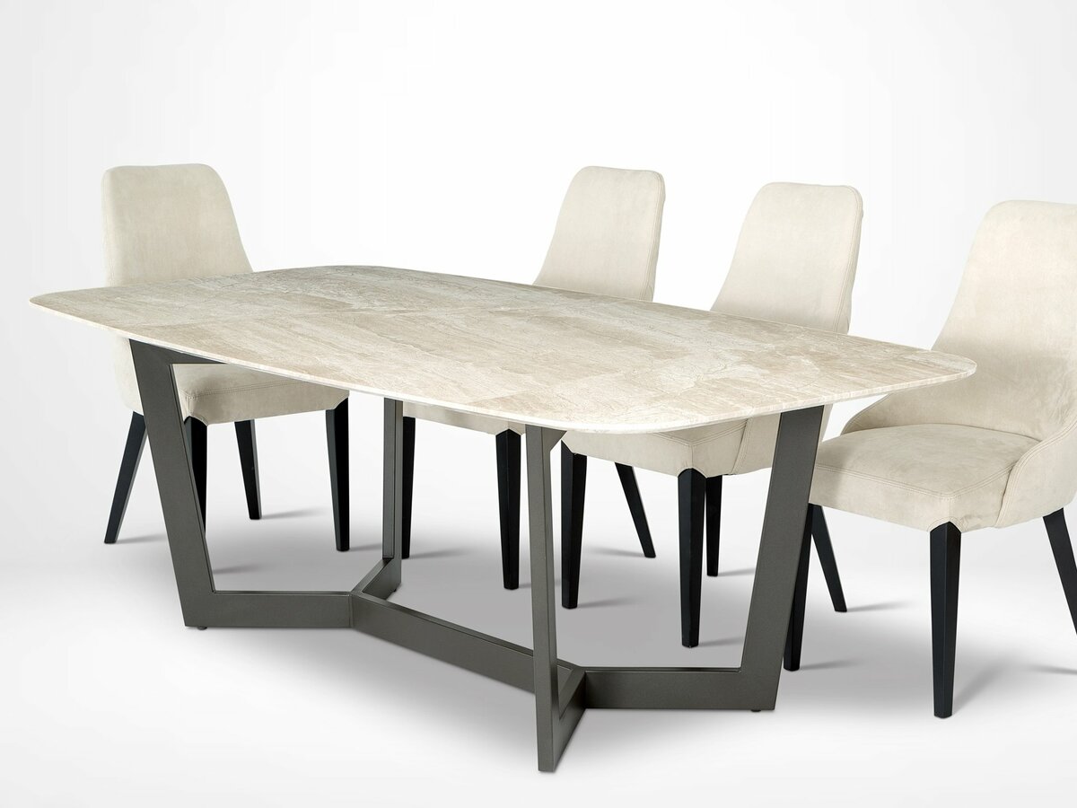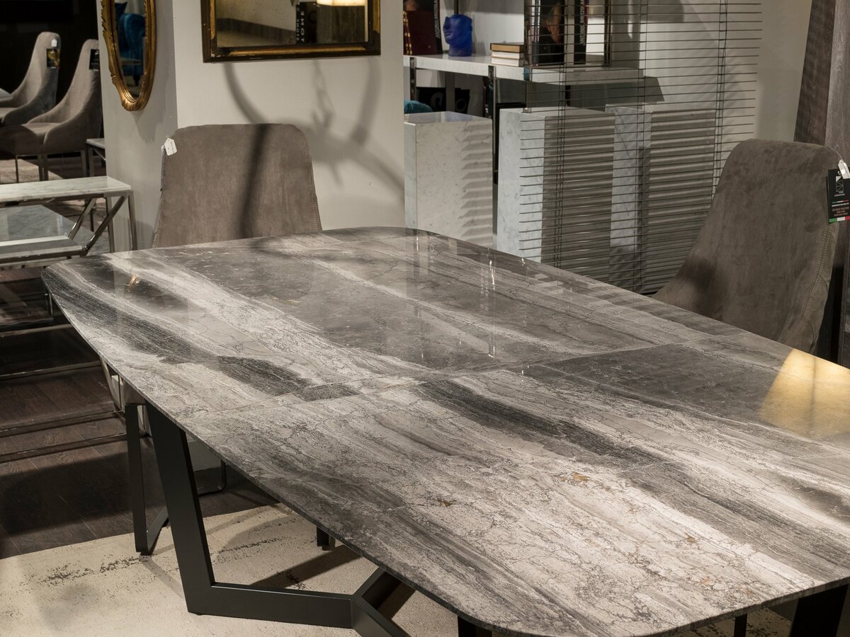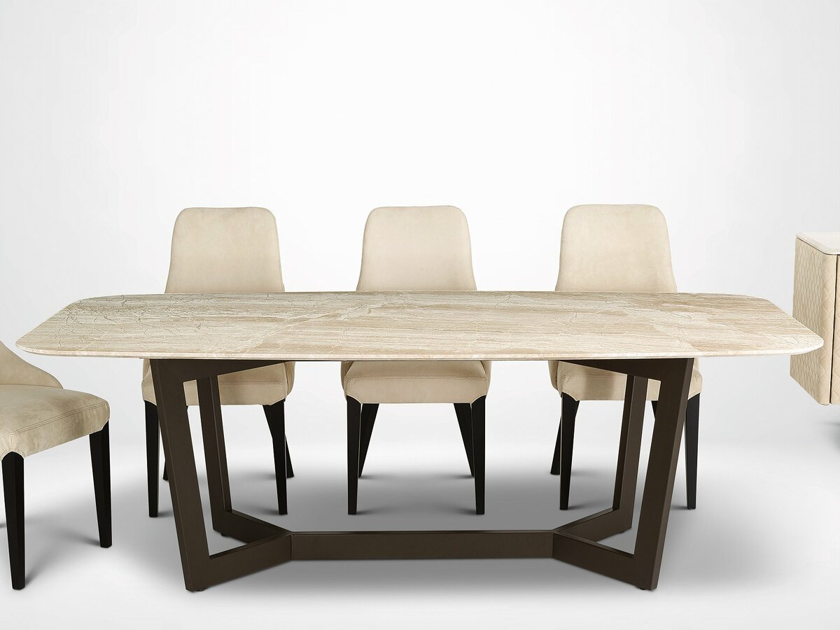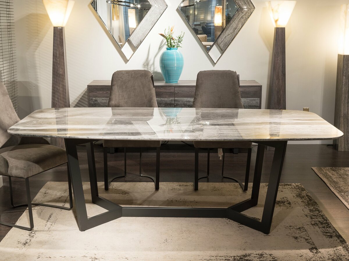 Дизайн коллекции Oscar вдохновлен экстремально модными и современными тенденциями с характерными чистыми и мягкими линиями. Широкое основание стола выглядит очень легко и воздушно. Тонкая столешница из натурального мрамора имеет закругленную форму и край, отшлифованный вручную. Великолепные металлизированные покраски основания дополняют базовую темно-серую отделку..