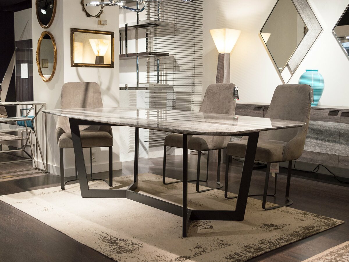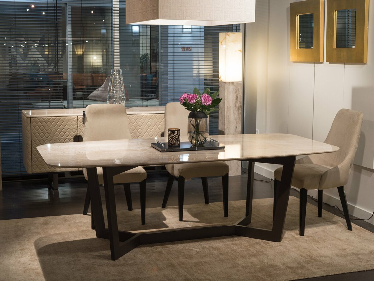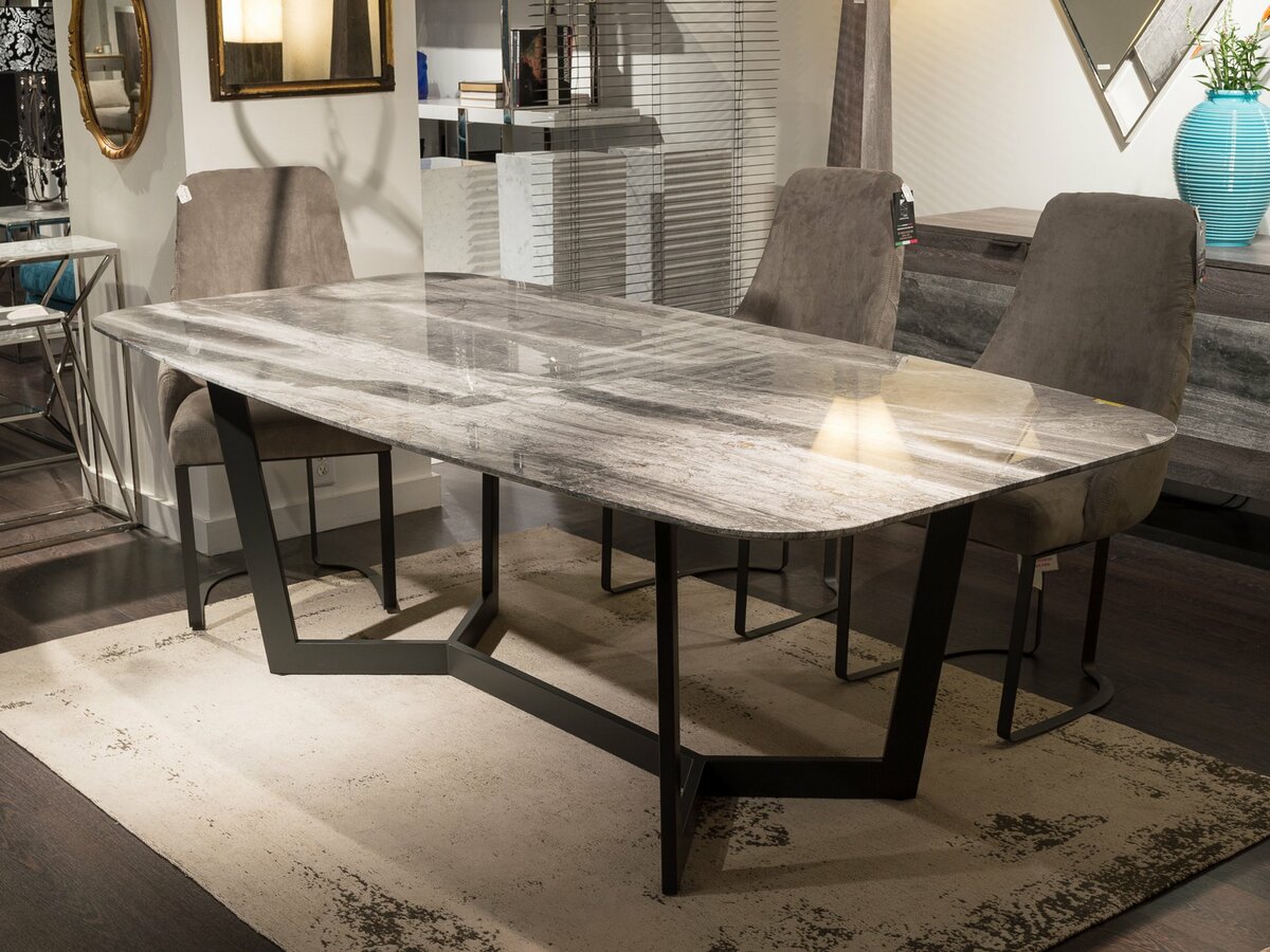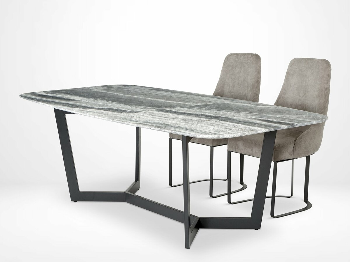 Дизайн коллекции Oscar вдохновлен экстремально модными и современными тенденциями с характерными чистыми и мягкими линиями. Широкое основание стола выглядит очень легко и воздушно. Тонкая столешница из натурального мрамора имеет закругленную форму и край, отшлифованный вручную. Великолепные металлизированные покраски основания дополняют базовую темно-серую отделку..