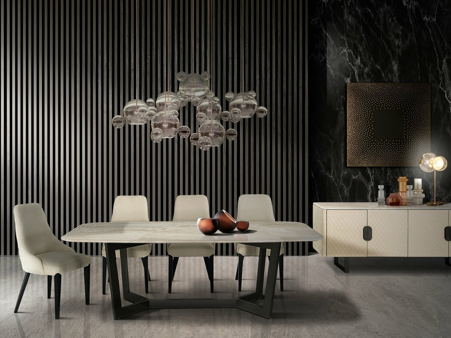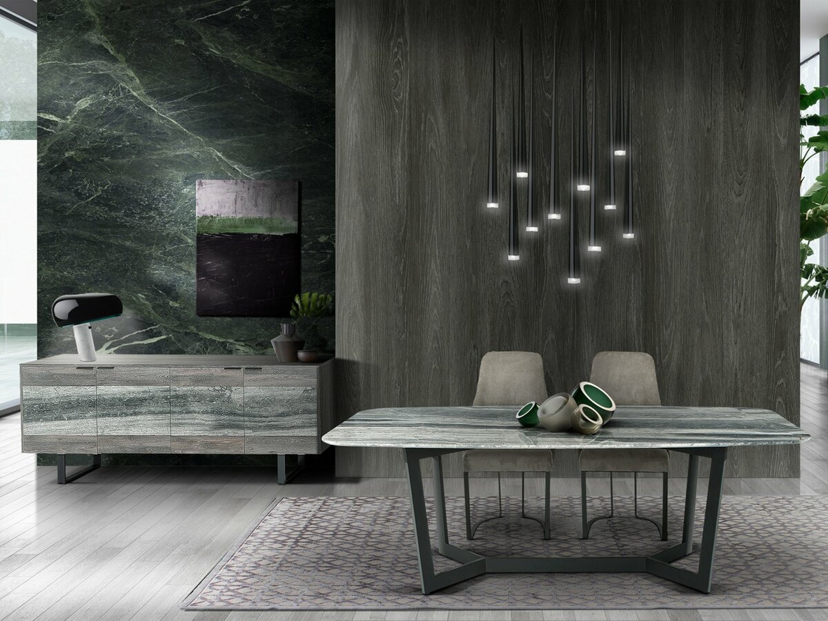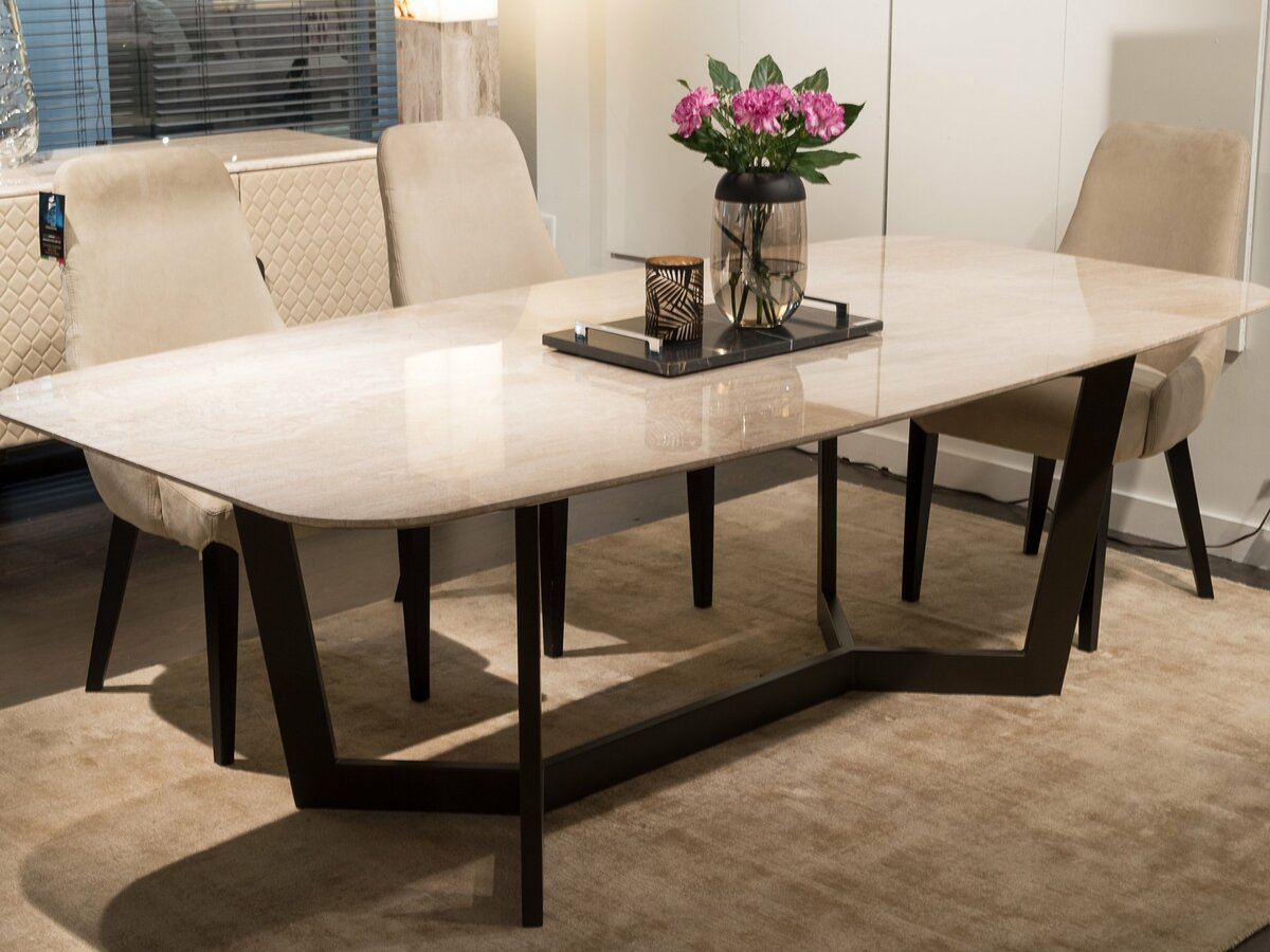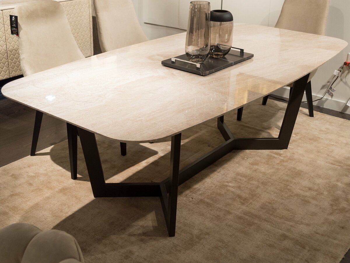 Дизайн коллекции Oscar вдохновлен экстремально модными и современными тенденциями с характерными чистыми и мягкими линиями. Широкое основание стола выглядит очень легко и воздушно. Тонкая столешница из натурального мрамора имеет закругленную форму и край, отшлифованный вручную. Великолепные металлизированные покраски основания дополняют базовую темно-серую отделку..