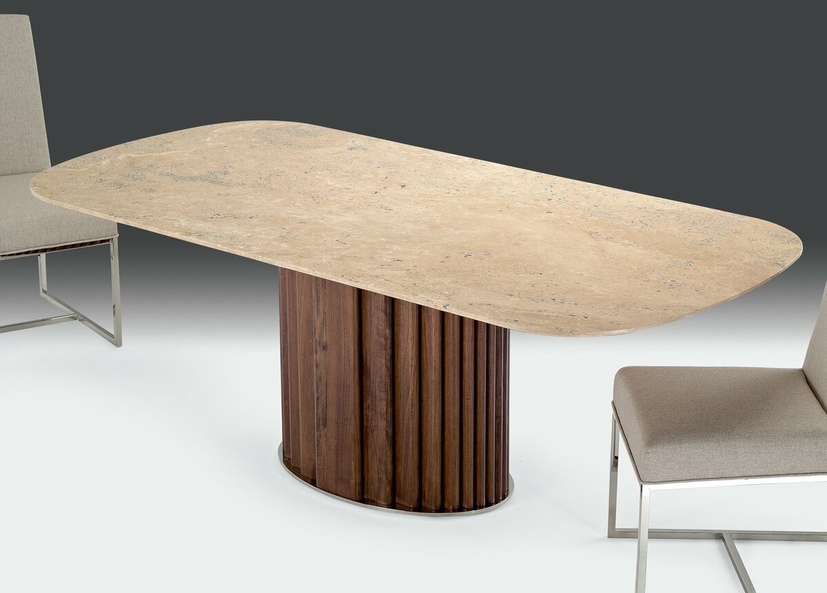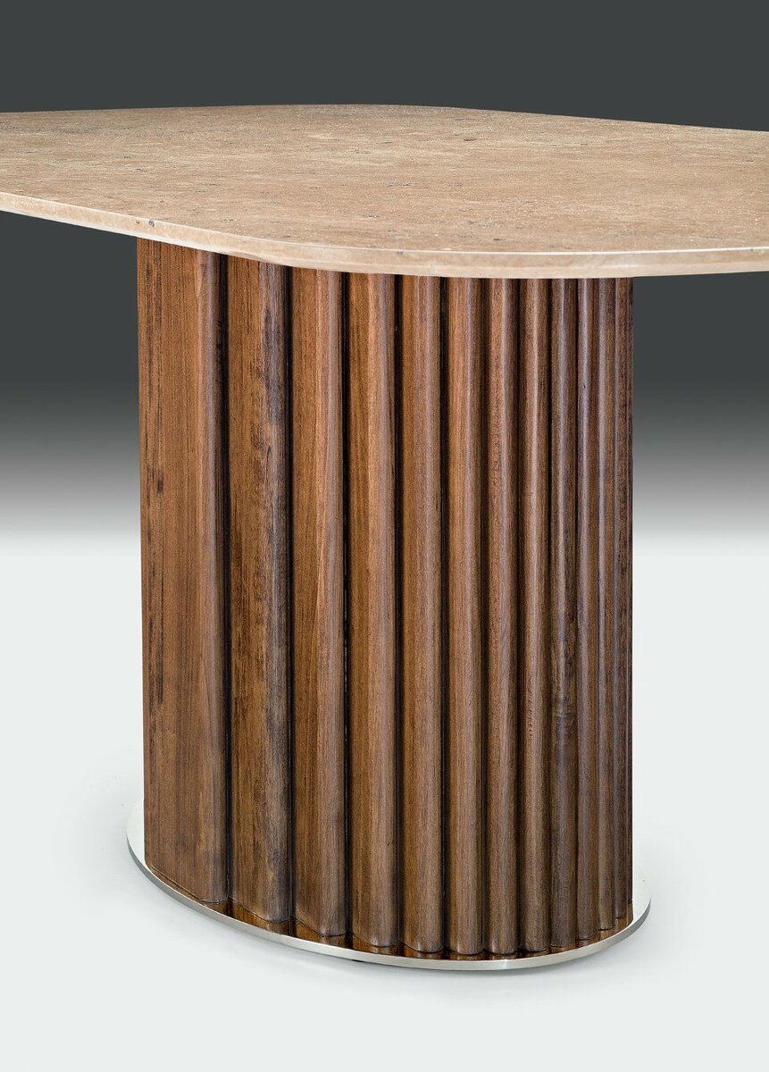 Стол Mayfair итальянский из мрамора на деревянном реечном основании с бочкообразной столешницей