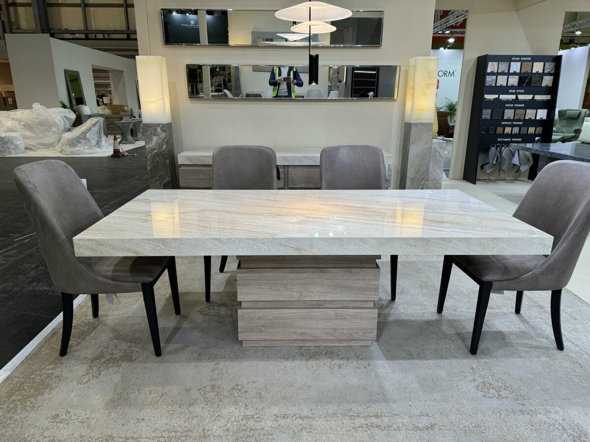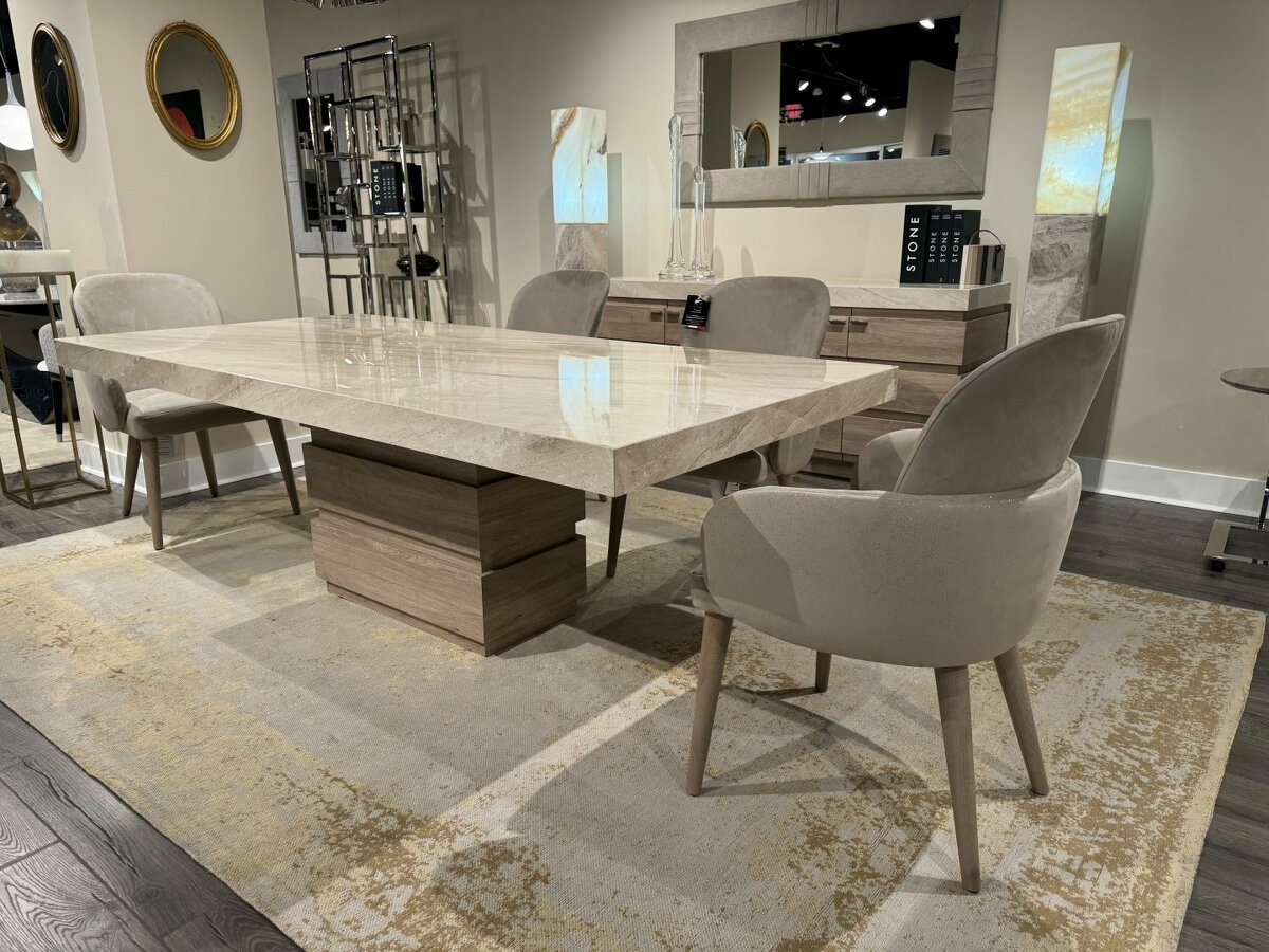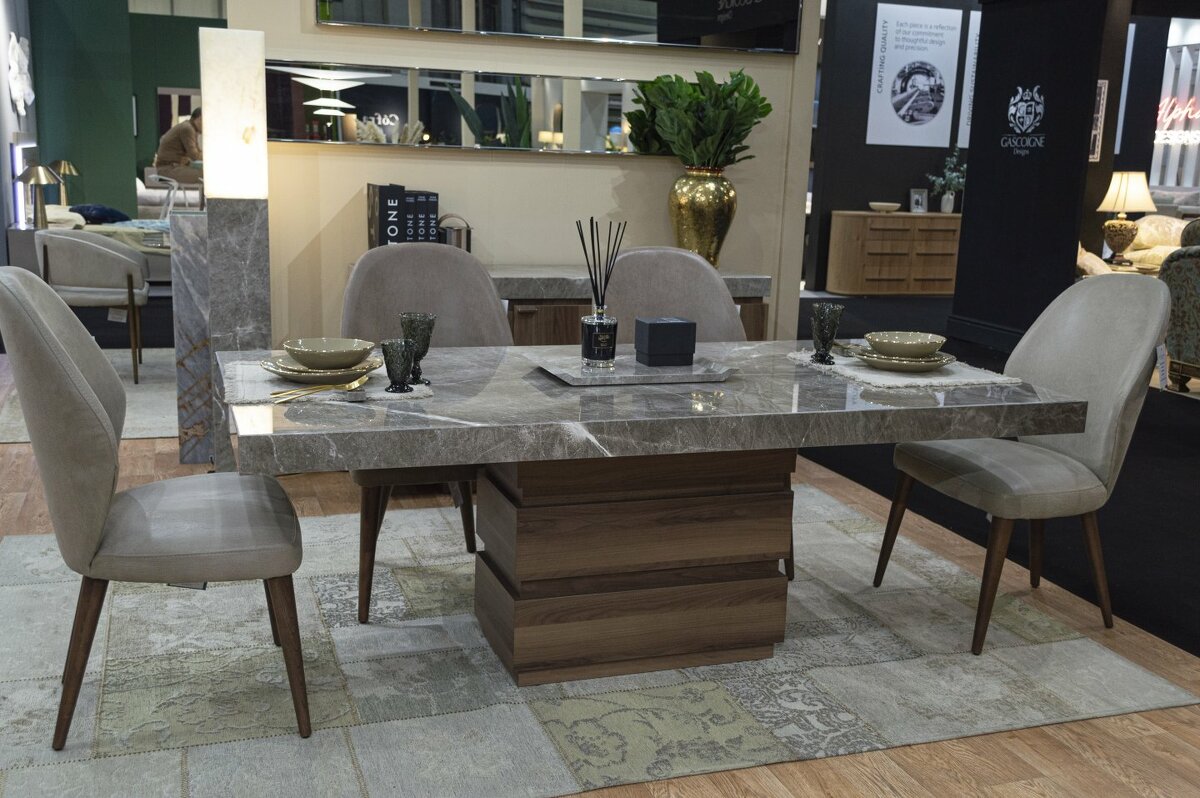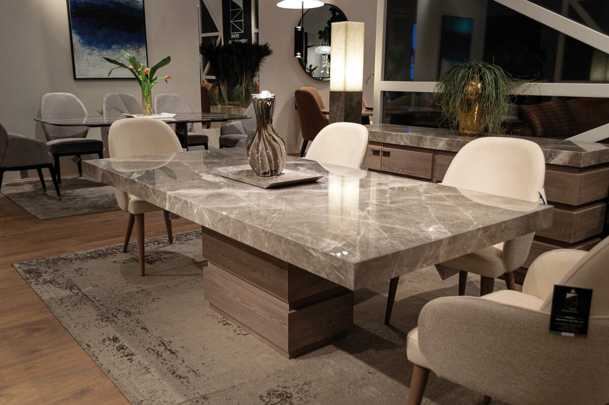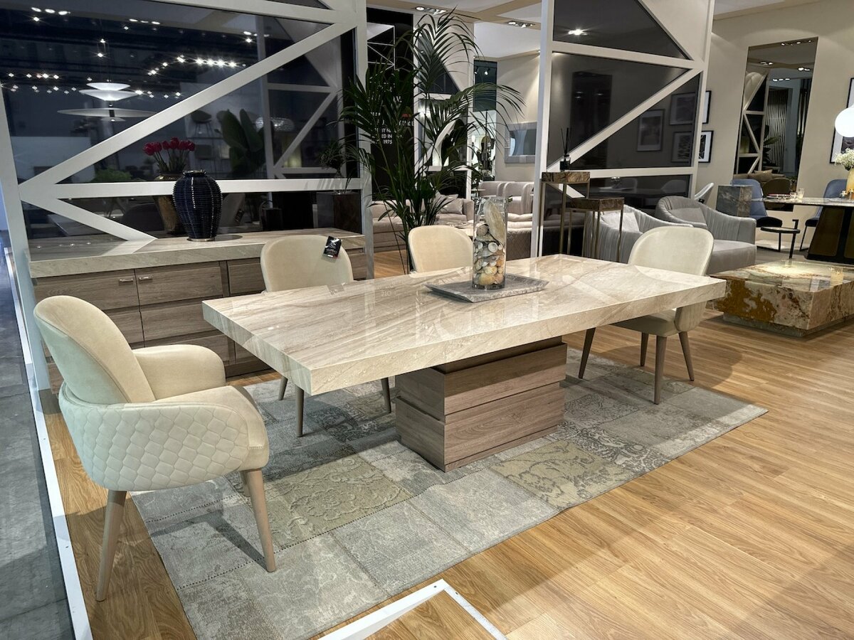 Стол итальянский обеденный Goya из натурального мрамора на деревянном основании