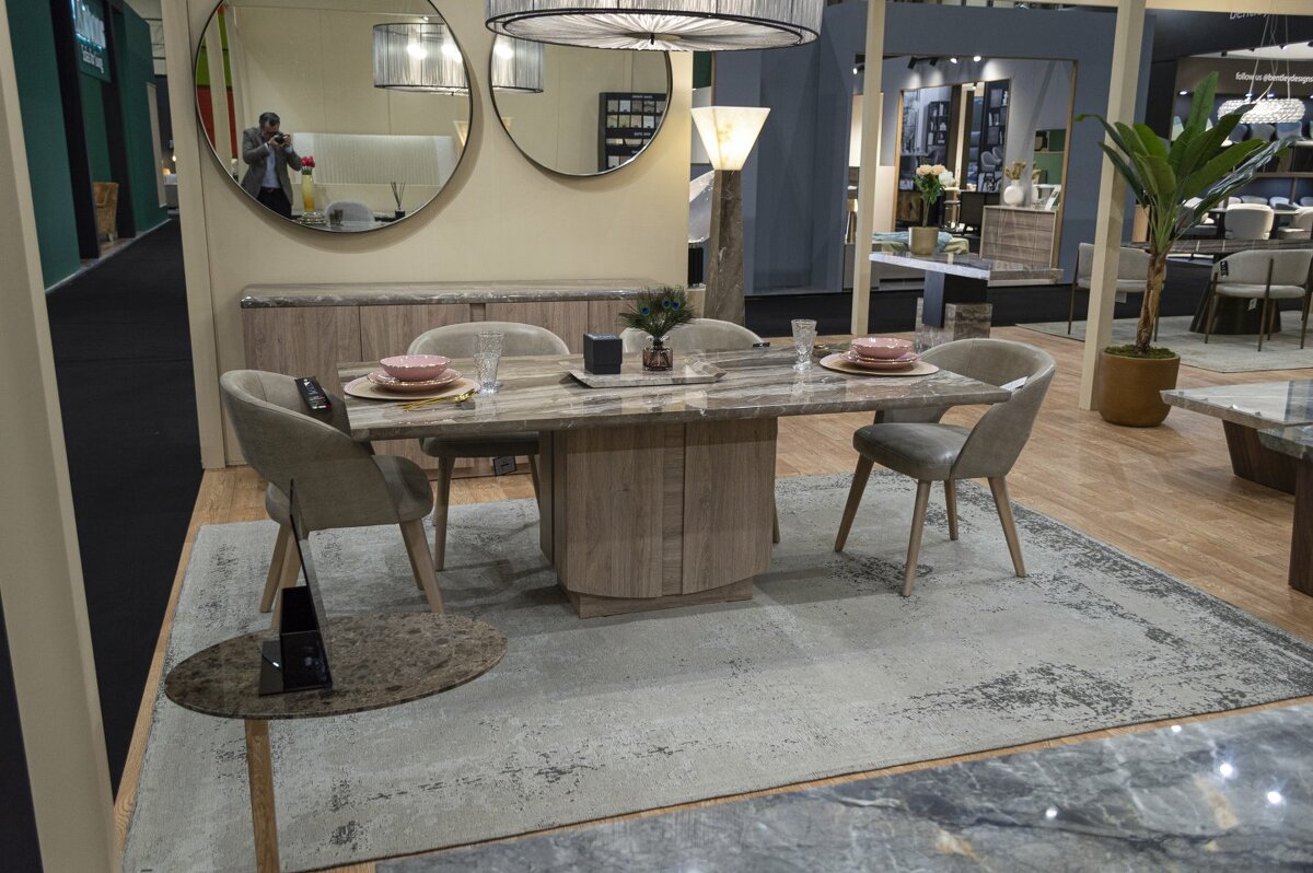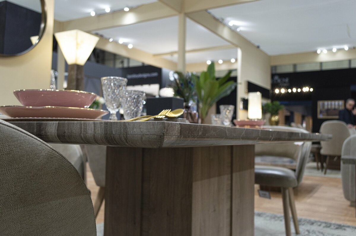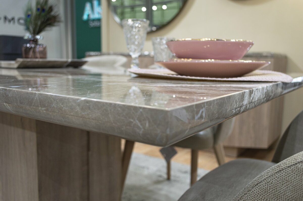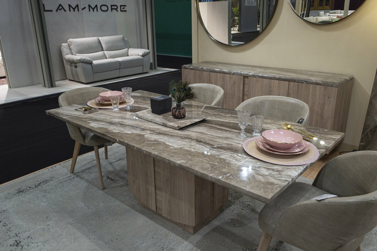 В коллекцию входят обеденные столы, тумбы для гостиной, элементы для спальной зоны. Все предметы выполнены из натурального мрамора и дерева. Геометричные формы смягчены изящными линиями декора и фацетами, оформляющими сбалансированный край на столешнице, изготовленной из натурального мрамора. Дизайн, который предлагает новый взгляд на традиции: солидность и архитектурная монументальность, перерожденная в плавность и элегантность.