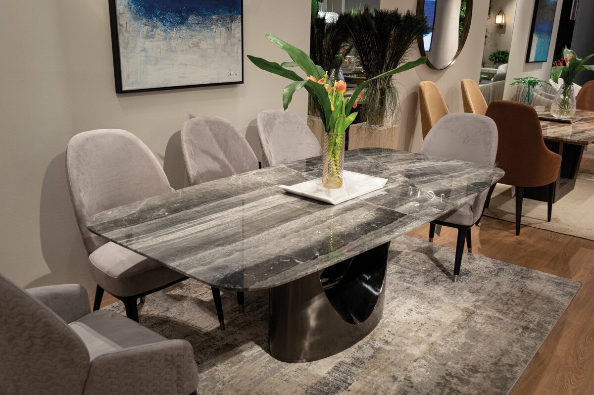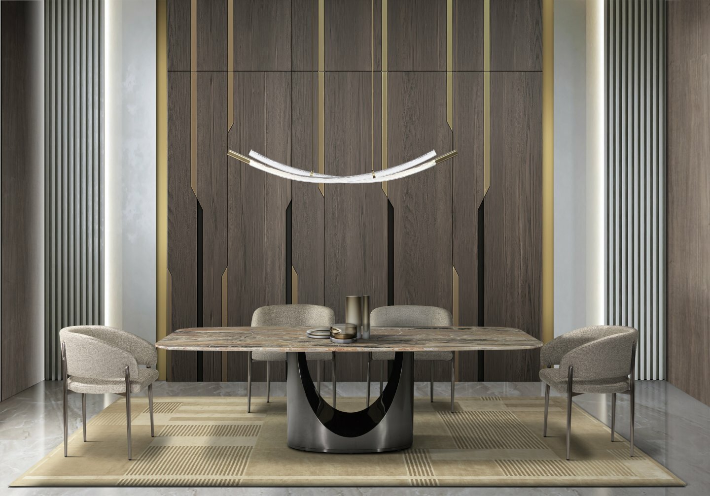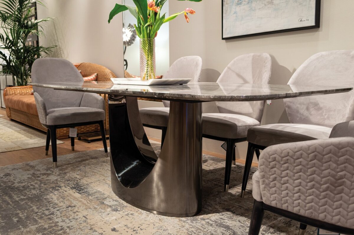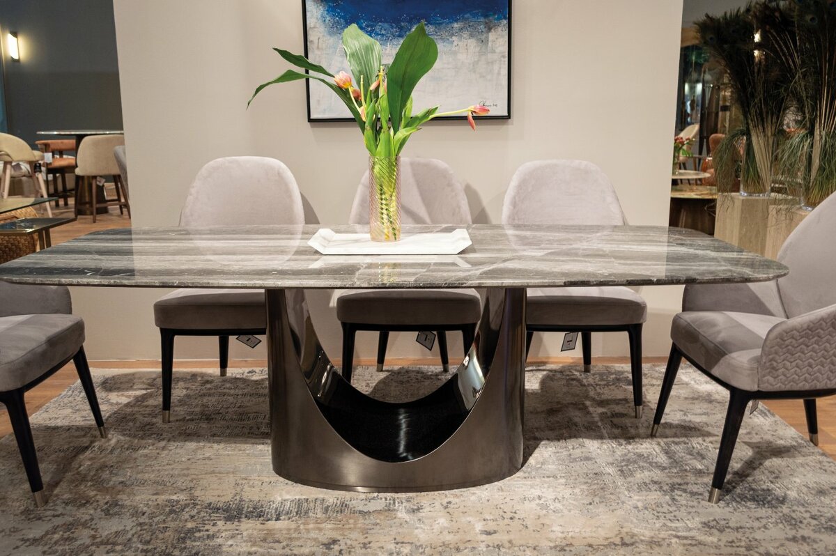 Стол Demilune обеденный итальянский столешница из натурального мрамора основание из металла