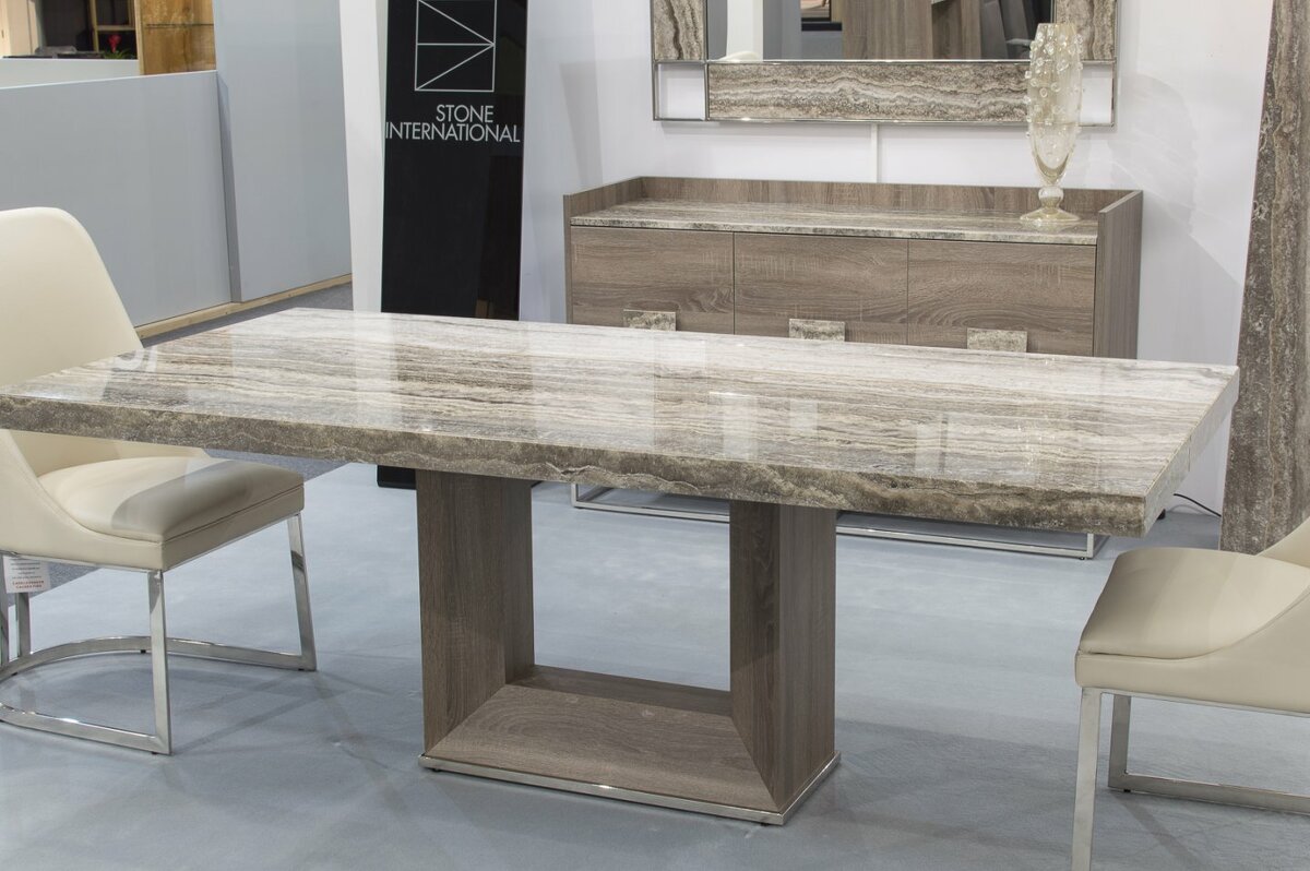 Стол обеденный итальянский Blade Light столешница из натурального мрамора основание шпонированное