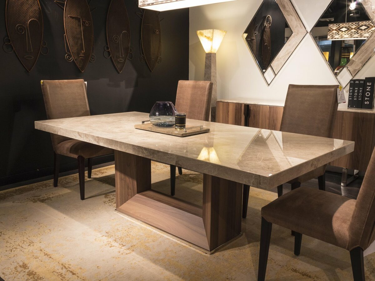 Стол Blade обеденный итальянский из натурального мрамора основание деревянное в натуральном шпоне