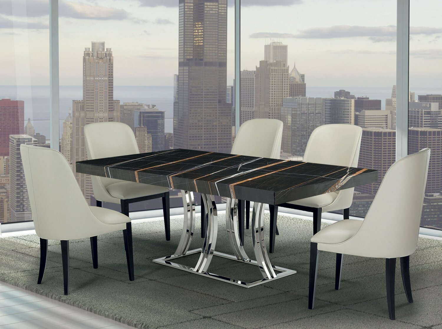 Стол Aurora Steel итальянский обеденный из натурального мрамора на основании из хромированной стали