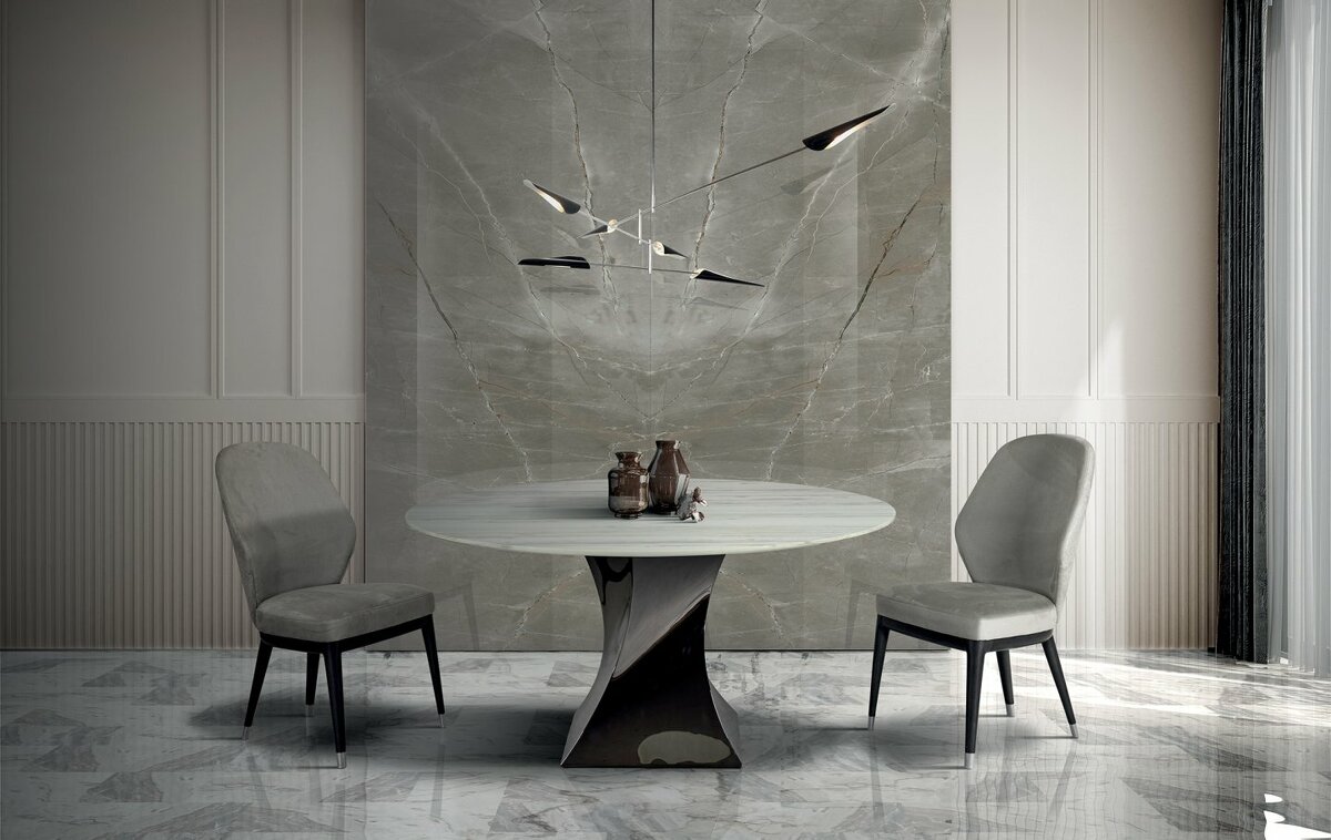 Стол итальянский обеденный круглый Twist Round из натурального мрамора на металлическом основании