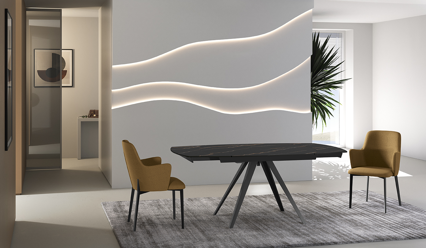Столешница изготовлена из особо прочной керамики, усиленной стеклом. Стоит обратить особое внимание на тот факт, что в отличии от отечественных производителей керамических столов итальянские всегда используют керамику, усиленную стеклом. За счет стекла столешница становится устойчивой к амплитудам колебания и механическим воздействиям. Керамика же защищает стекло от ударов, царапин, делает его резистентным. Только такое сочетание создает невероятную прочность, необходимую обеденному столу.