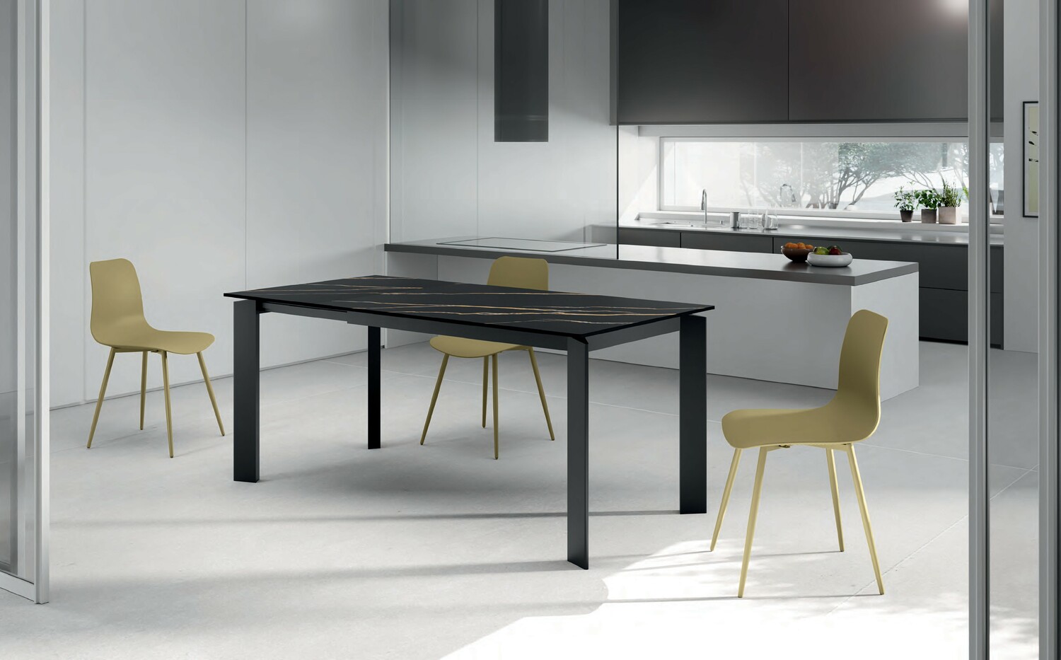 Стол обеденный раскладной компактный Frame/OM/466/PO Stones с черной керамической столешницей