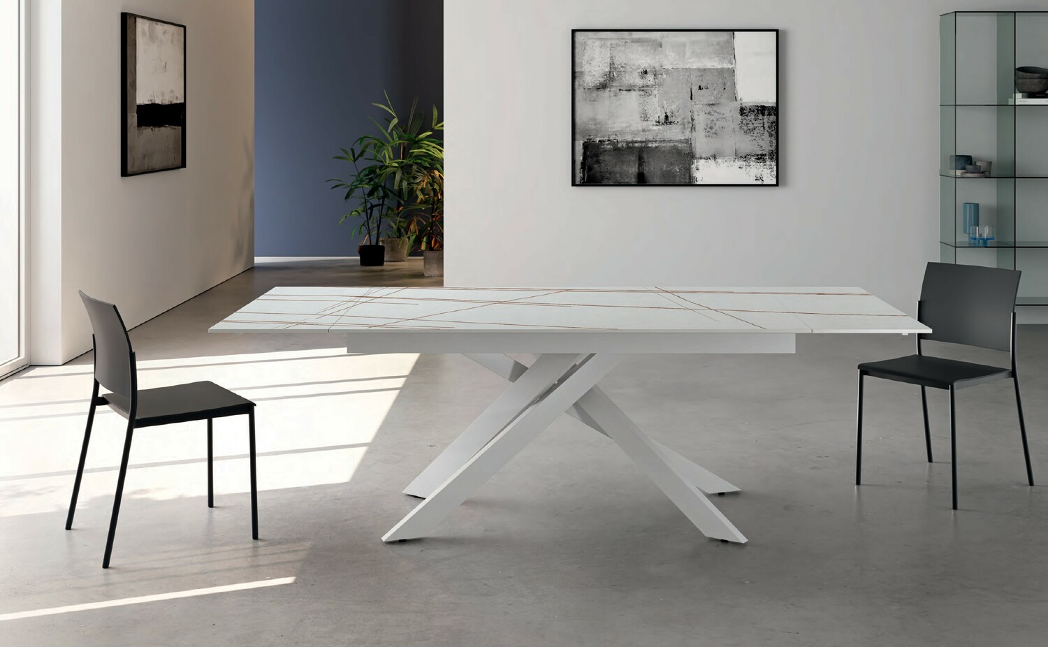 Стол итальянский обеденный раскладной ARES/OM/452/BI Stones с керамической столешницей белого цвета