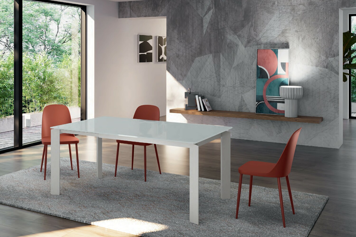 Стол обеденный раскладной компактный Frame/OM/486/XW Stones со стеклянной столешницей белого цвета