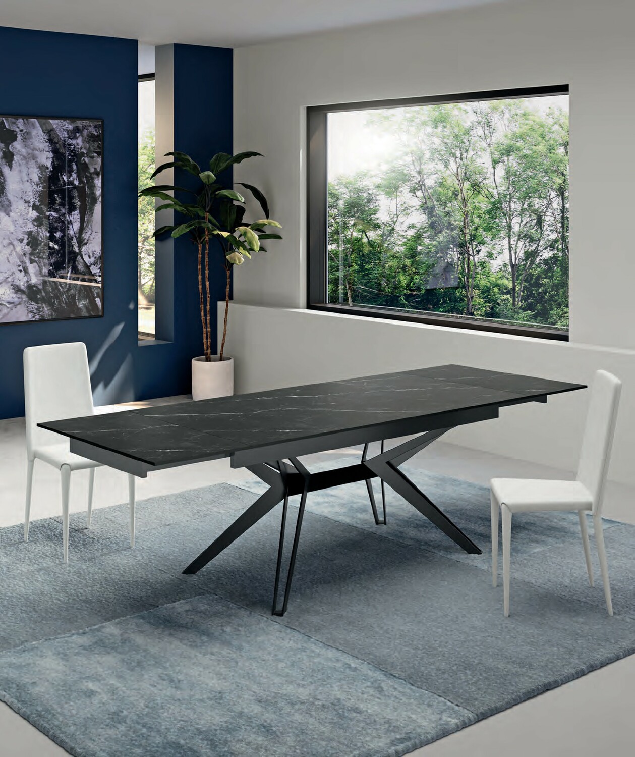 Способность акцентировать на себе внимание - это главная особенность этого раскладного стола в современном индустриальном стиле. Элегантная столешница из керамики гармонично сочетается с прочным основанием из черного металла. Match во всех свои трех вариантах предлагает разнообразие возможных сочетаний между отделкой столешницы и формой основания, отвечая разнообразным вкусам и отражая дух его владельца через ярко-выраженную индивидуальность. Благодаря механизму раскладывания и дополнительным вставкам стол позволяет разместить за ним до 10 человек. Он становится идеальным союзником в создании удобных пространств даже в самых скромных по размеру помещениях.
