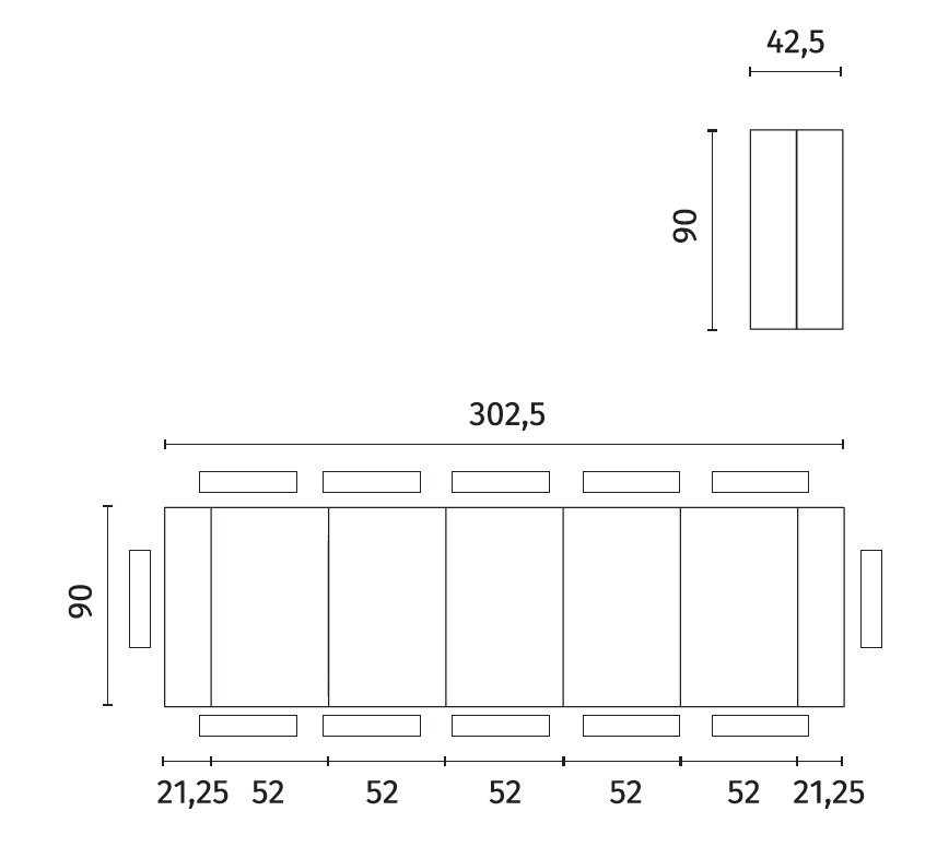 Элегантная пристенная консоль, изготовленная из МДФ и окрашенная в матовый цвет. За счет пяти вставок шириной 52 см консоль может увеличиваться в длину до 302 см, превращаясь в большой обеденный стол на 14 человек. В собранном состоянии консоль служит функциональным предметом интерьера для прихожей или гостиной. Вставки хранятся отдельно и могут использоваться в том количестве, которое необходимо для данного конкретного случая.