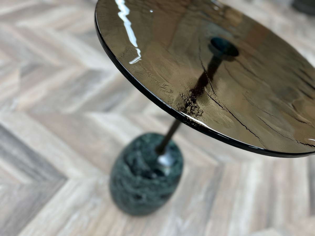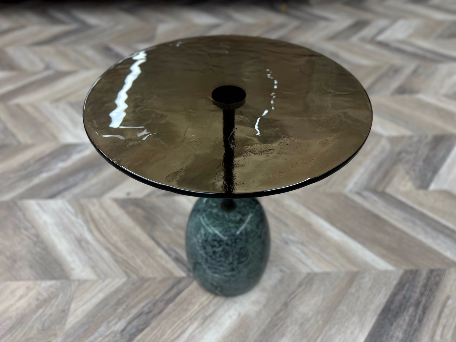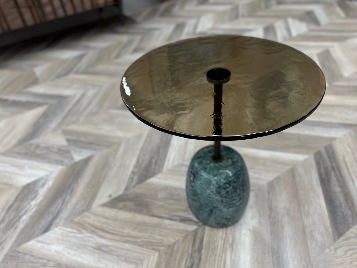 Стол журнальный итальянский Sir verde с дизайнерским стеклом на мраморный основании Eforma