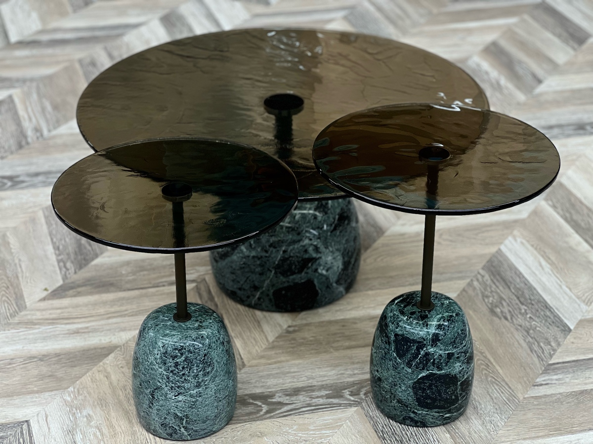 Каждый столик имеет солидное и благородное основание из массивного натурального мрамора.