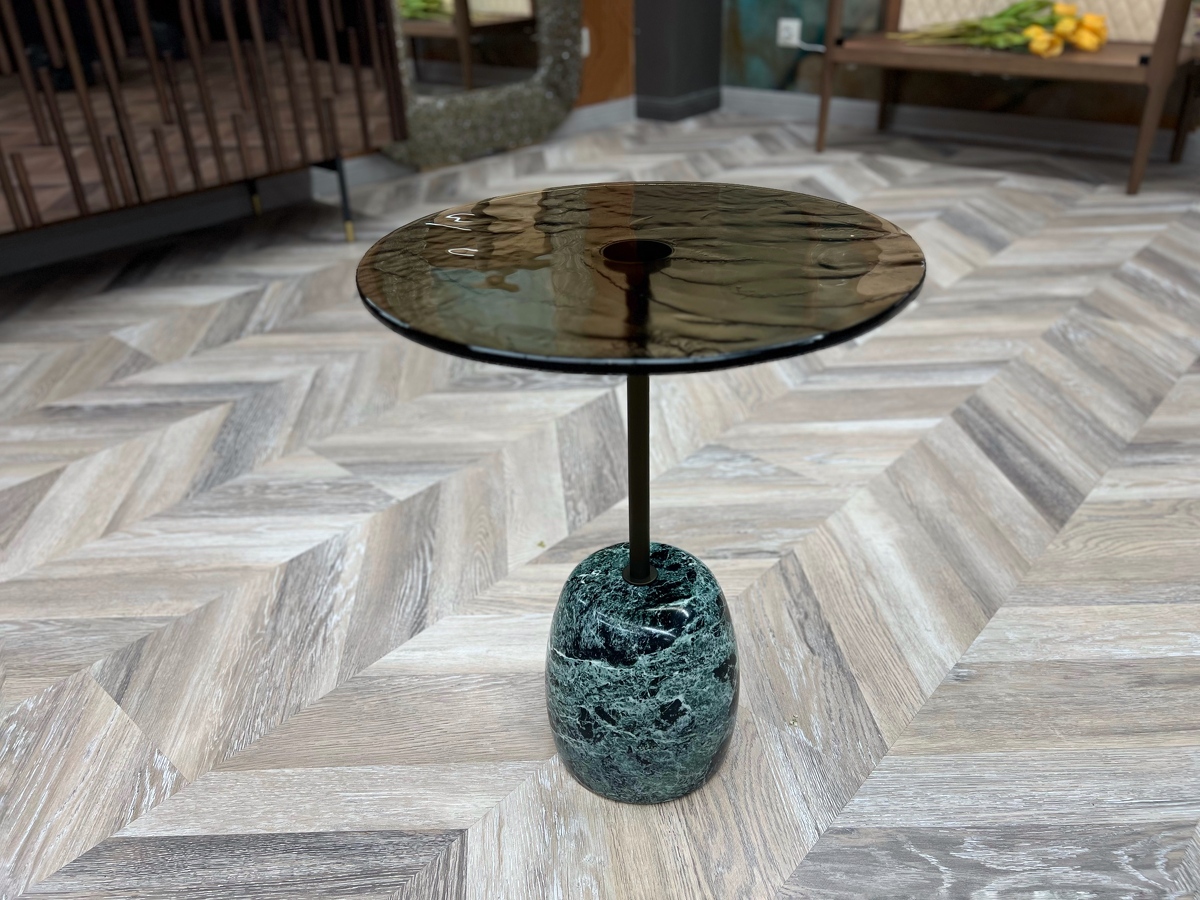 Стол журнальный итальянский Sir verde с дизайнерским стеклом на мраморный основании Eforma