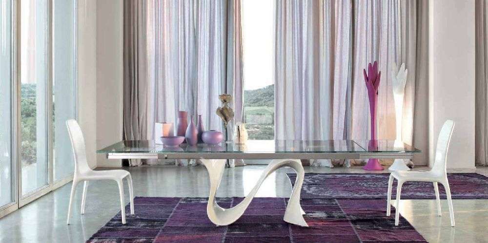 Самый уникальный и как следствие самый популярный стол от Tonin Casa. Дизайнерский стол Wave с невероятными техническими характеристиками это визитная карточка фабрики. Основание стола в виде волны изготовлено из запатентованного материала BAYDUR от мирового производителя полиуретана Bayer MaterialScience Copmany. Этот полиуретан, прессованный под высоким давлением обладает очень большой плотностью и при этом малым весом. За счет этого основание стола не требует специальной упаковки и легко транспортируется на дальние расстояния. Основание стола легче в три раза, чем аналогичное, изготовленное из агломерата. Baydur также придает основанию такие свойства как ударопрочность, огнеупорность и устойчивость к ультрафиолетовому излучению. Неслучайно материал широко используется в современной автомобильной промышленности. Нога белого цвета.